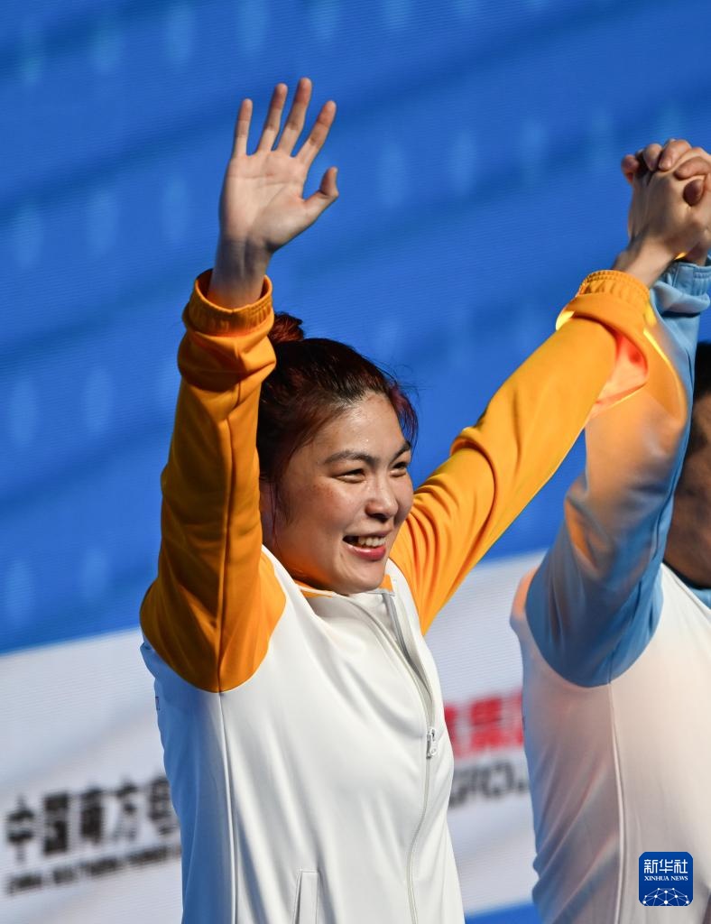 11月12日,禹立赛(右)在夺冠后庆祝。