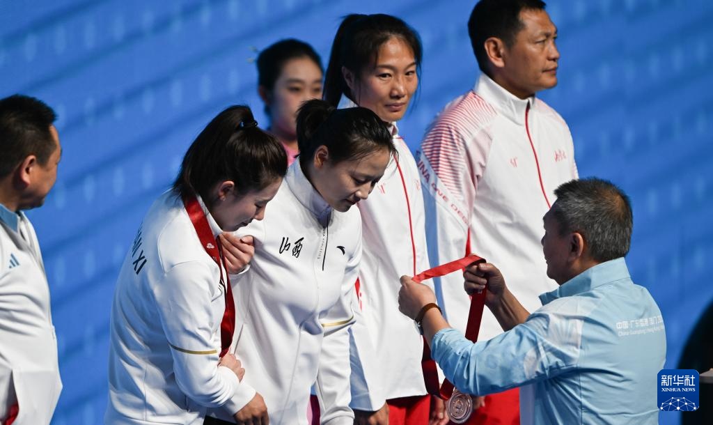 11月12日,季军山西队选手赵春媛(中)在颁奖仪式上。