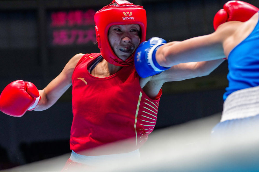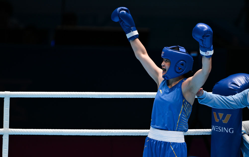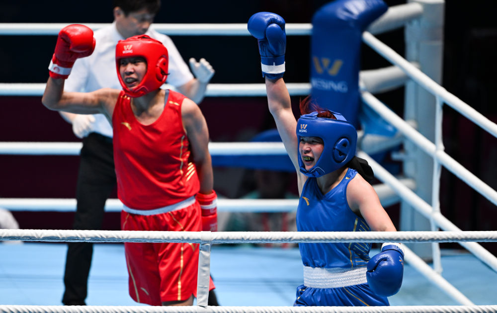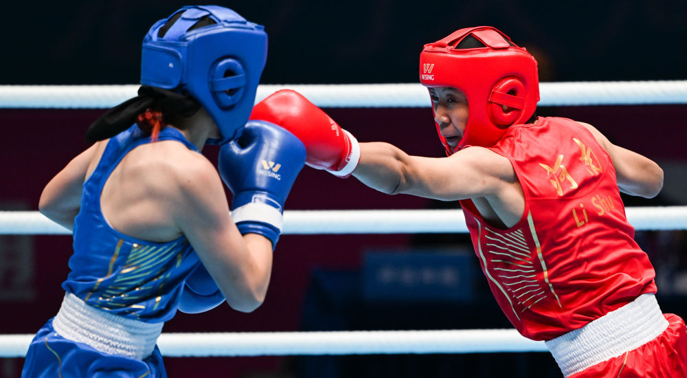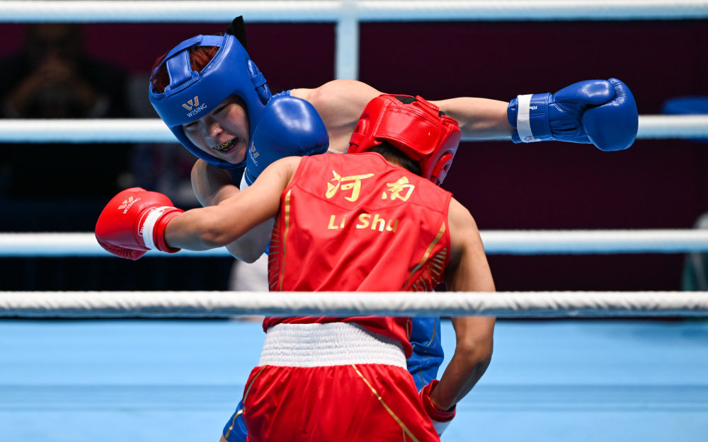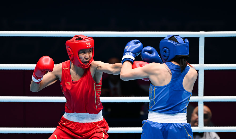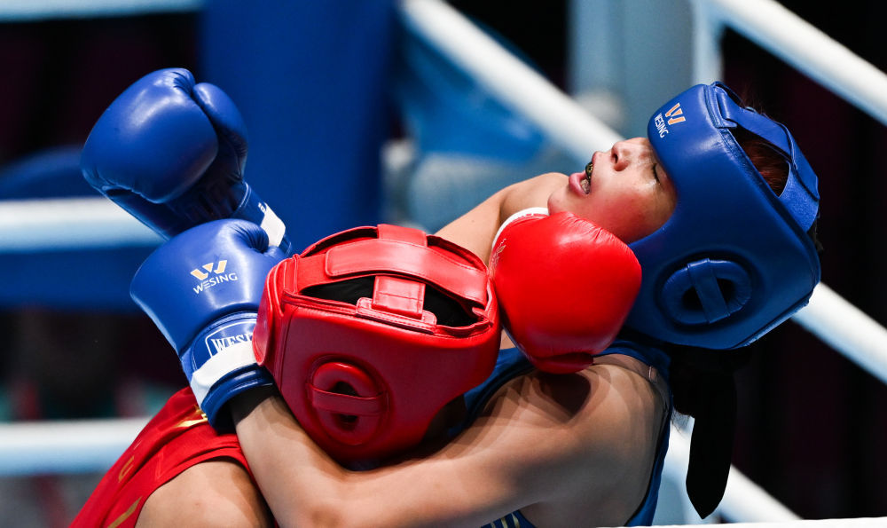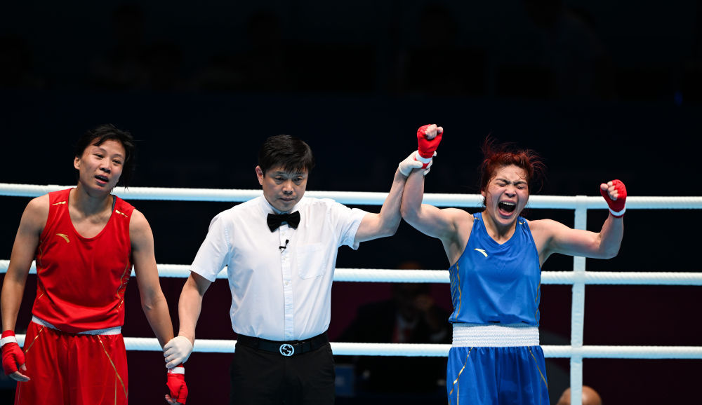 11月12日,在深圳进行的第十五届全国运动会拳击女子66公斤级决赛中,北京体育大学队选手禹立赛战胜河南队选手李书,获得冠军。