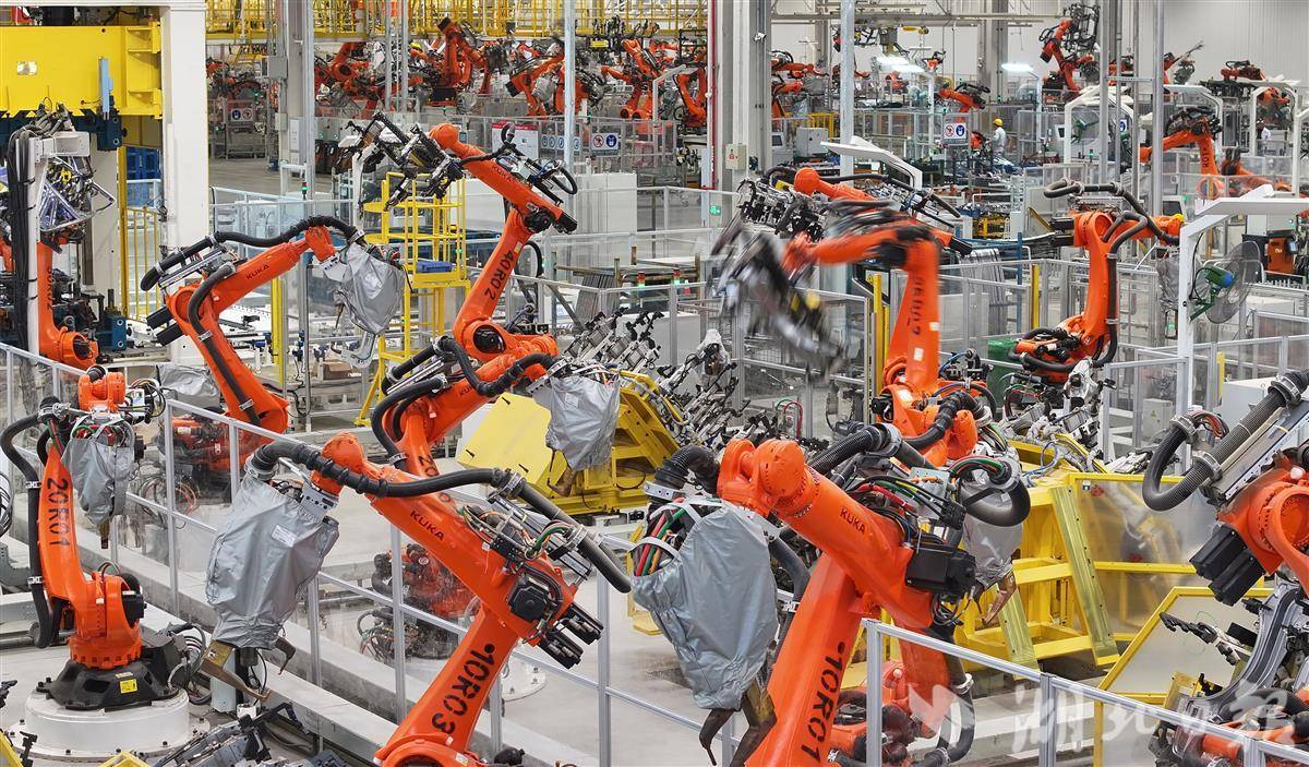 11月12日,东风汽车股份有限公司襄阳工厂新投产的焊装车间生产线在高效有序生产中。该工厂新焊装车间通过“智能绿色双轮驱动”实现制造升级,车间内154台KUKA机器人完成车身96%焊点焊接工序,自动化生产线高效运转。此举使生产效率翻番,整车骨骼精度提升至91%以上,并通过集中净化处理实现绿色减排,成功迈向智能化、绿色化制造新阶段。(视界网 王虎 张明远 摄)