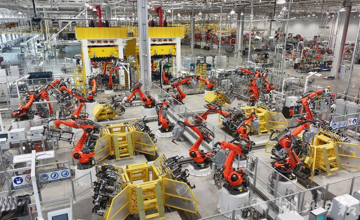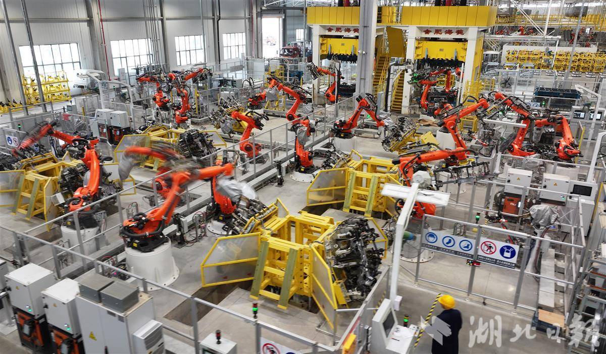11月12日,东风汽车股份有限公司襄阳工厂新投产的焊装车间生产线在高效有序生产中。