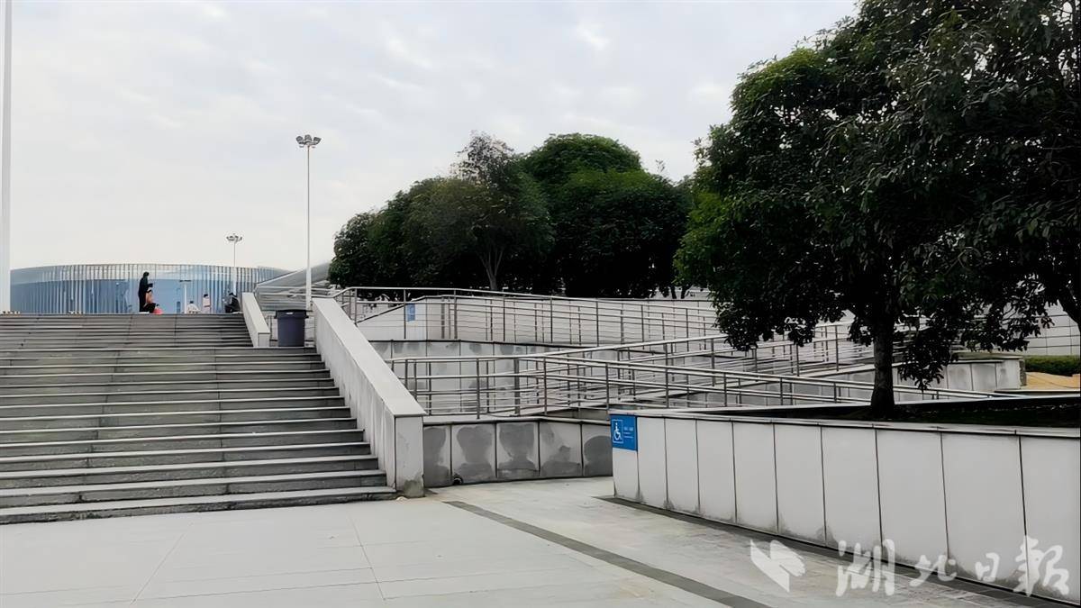 武汉国际博览中心的“Z”字形残疾人坡道。(记者王艳华摄)
