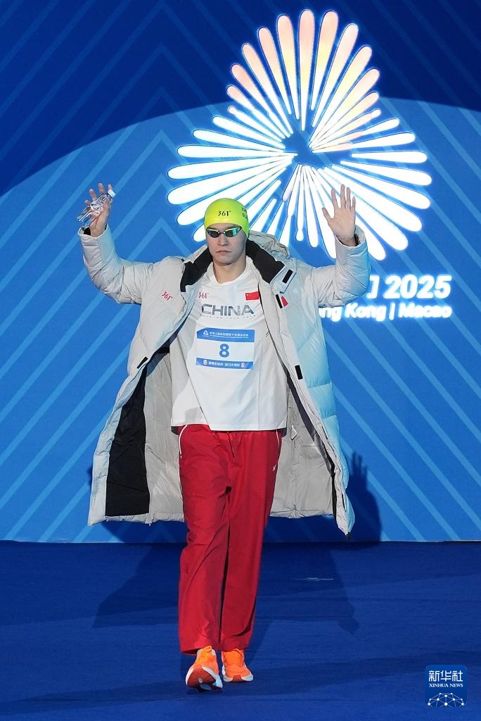 11月12日,山东队选手潘展乐在比赛前入场。最终,他获得季军。