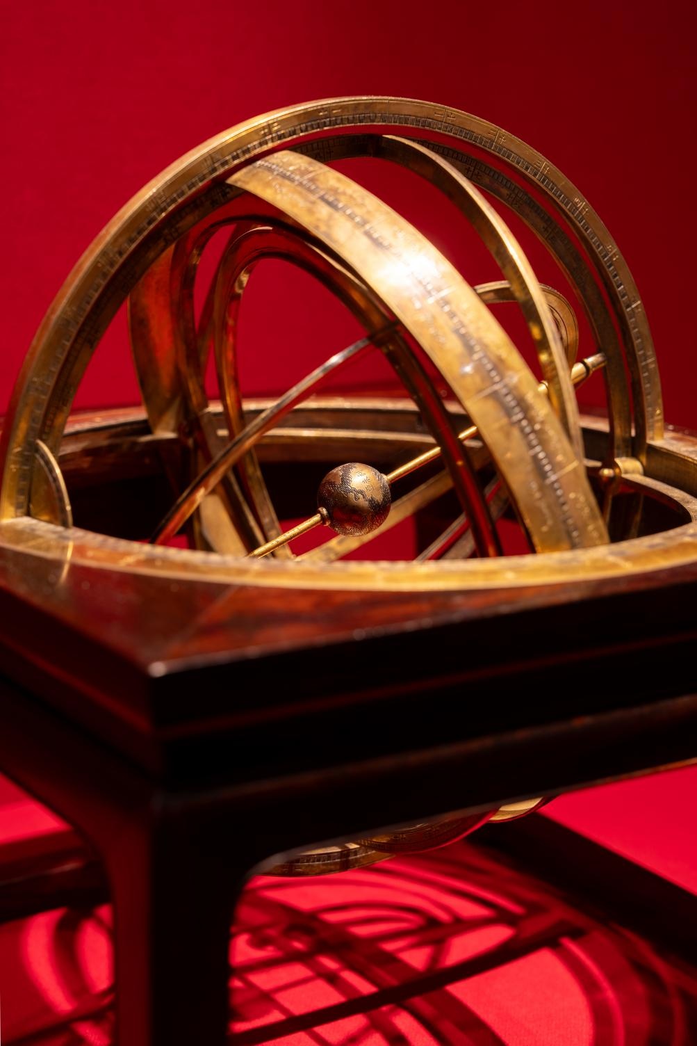 “‘百年守护’展中精选了几件清代天文仪器,如浑仪、简平星盘仪、新法地平日晷等。它们不仅体现了中华文明的赓续,也反映了中西方文化的交流。”徐婉玲说。清康熙银镀金浑仪的中心嵌一个小地球,上刻有“亚细亚”“欧罗巴”等大洲的名称。这件浑仪可以演示日月交食之成因,推动了西方天文知识在中国的传播。