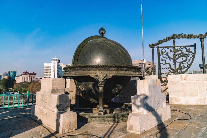 现存最古老的浑仪位于江苏南京紫金山天文台上,为明正统年间制作,距今有500多年历史。与之并列的简仪亦是正统年间所制,为郭守敬简仪的仿制品。它们造型庄重,纹饰精美,采用龙柱与云柱支撑,气势雄伟。这两架仪器原列于北京古观象台,抗战时期,为防日军劫掠,将它们运至南京。