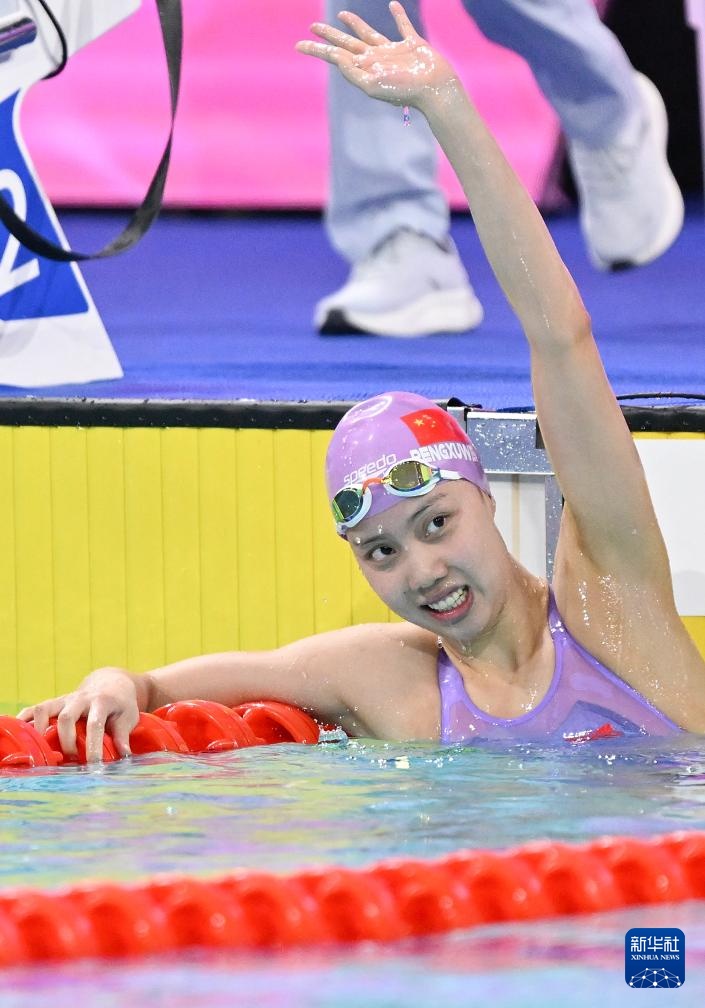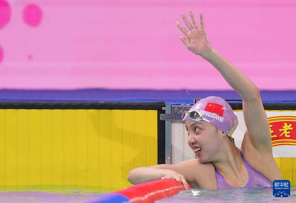 11月12日,湖北队选手彭旭玮在比赛后。她获得冠军。