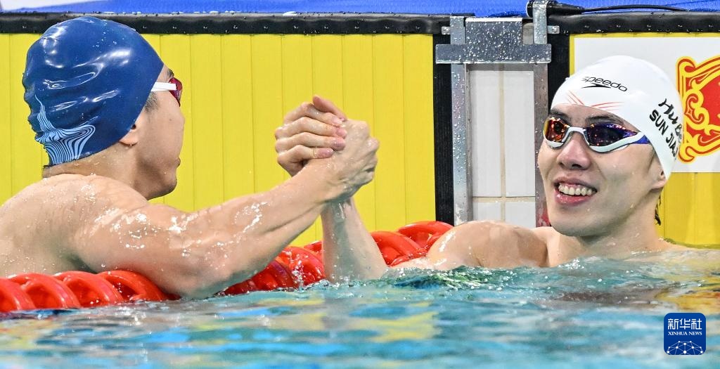 11月12日,湖北队选手闫子贝(左)与队友孙佳俊在比赛后握手致意。他们晋级决赛。