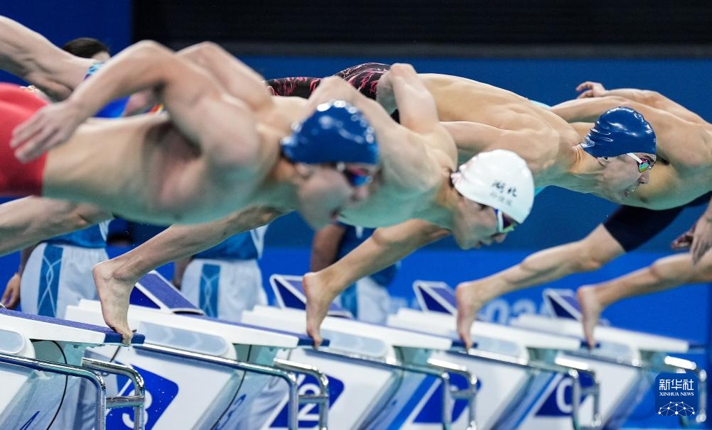 当日,第十五届全国运动会游泳男子50米蛙泳半决赛在广东省深圳市举行。
