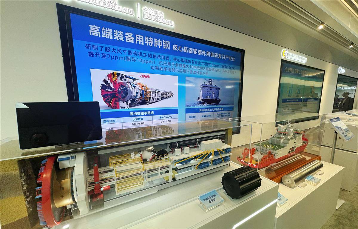11月5日,“尖刀”技术攻关项目成果展上,由大冶特钢研制的、应用于全球最大18米级盾构机的特种钢,作为“高端装备”与“先进材料”领域的交叉典范,尤为引人注目。该成果突破国外垄断,依托特种钢研制出的全球最大盾构机主轴承,连创三项世界纪录:直径8.61米,全球最大;单体62吨,全球最重;轴向承载力10万千牛、全球最高;解决了我国高端装备“卡脖子”难题,支撑国家重大基建自主可控。