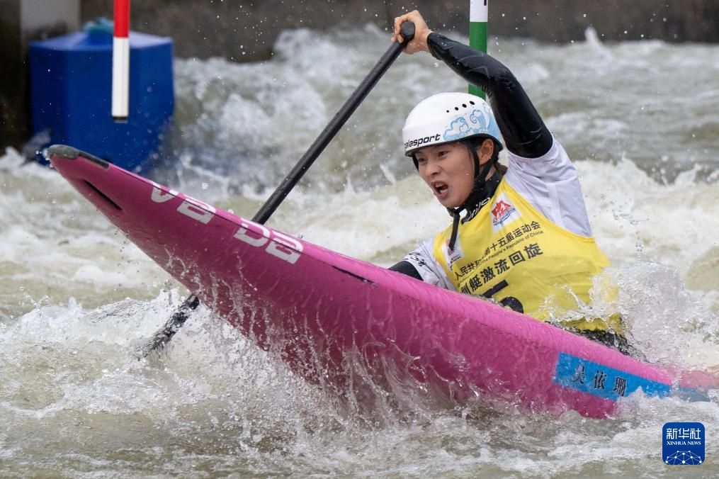 当日,第十五届全国运动会皮划艇激流回旋项目女子单人划艇预赛在广东省船艇训练中心举行。