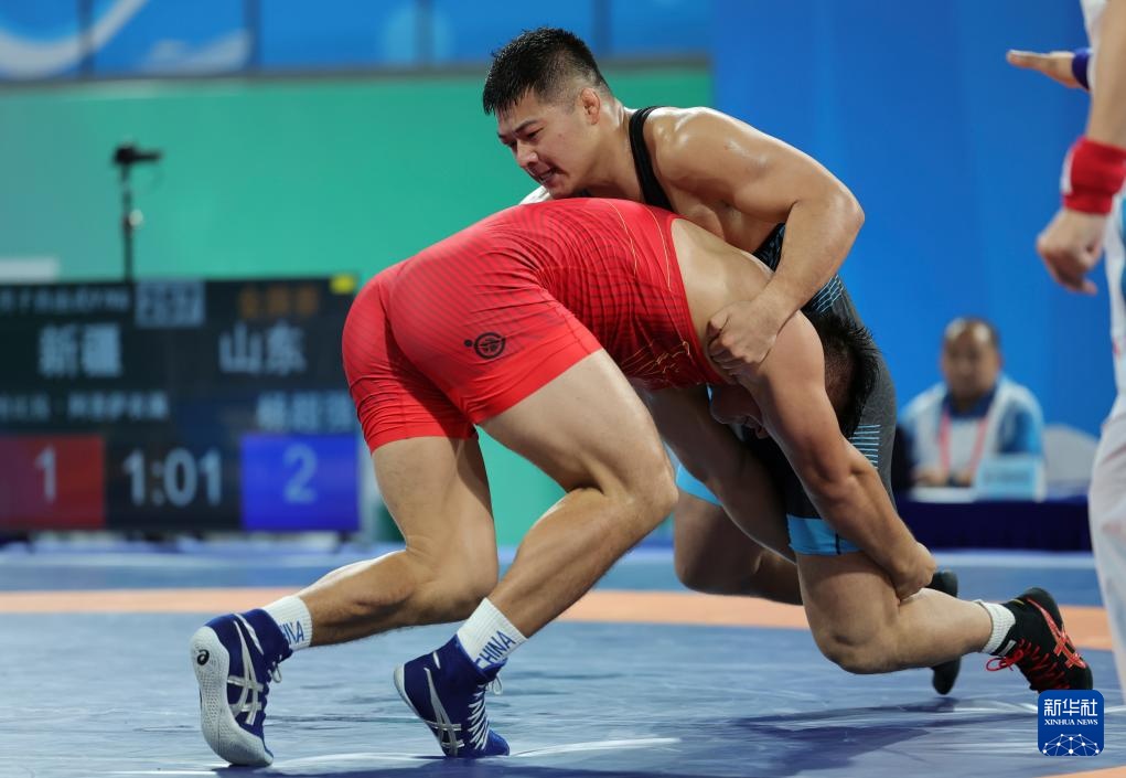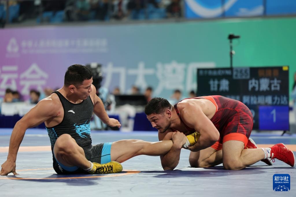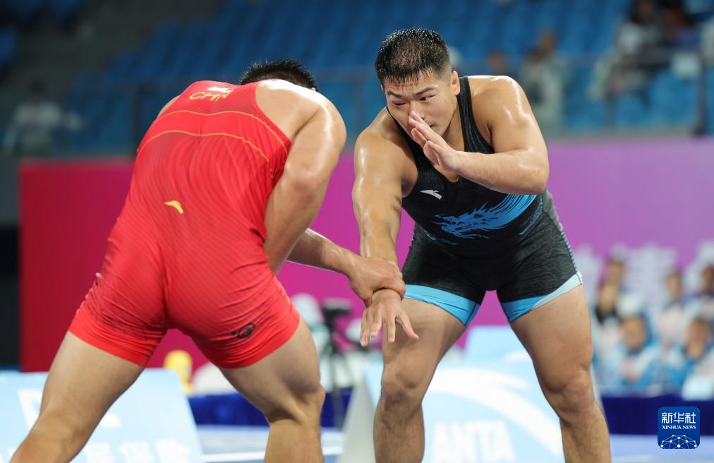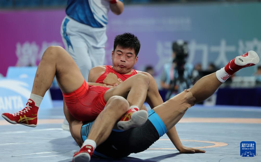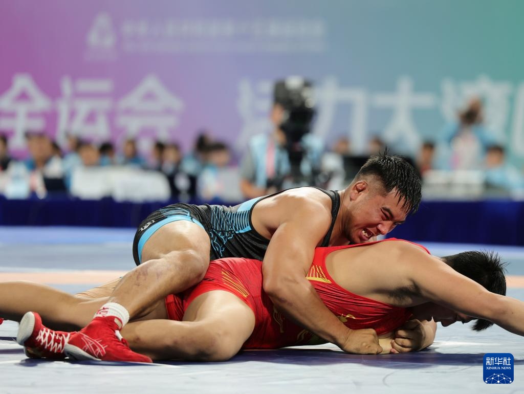 当日,第十五届全国运动会摔跤男子自由式97公斤级比赛在广东清远举行。
