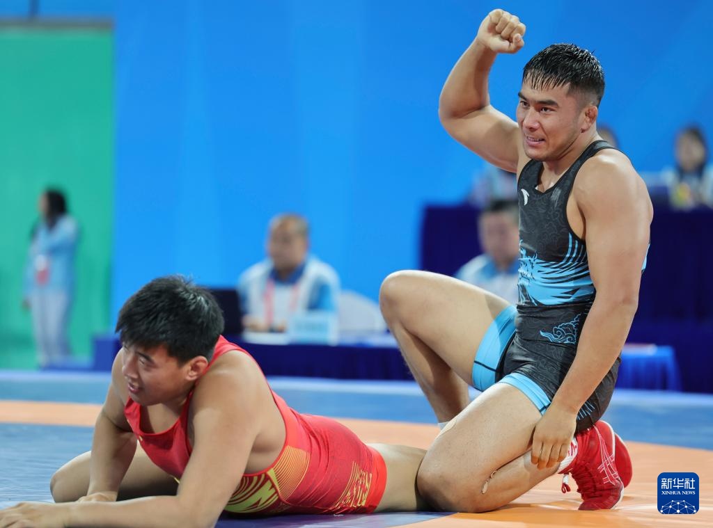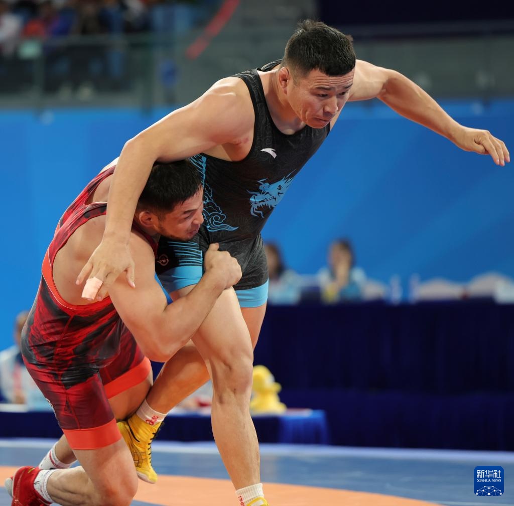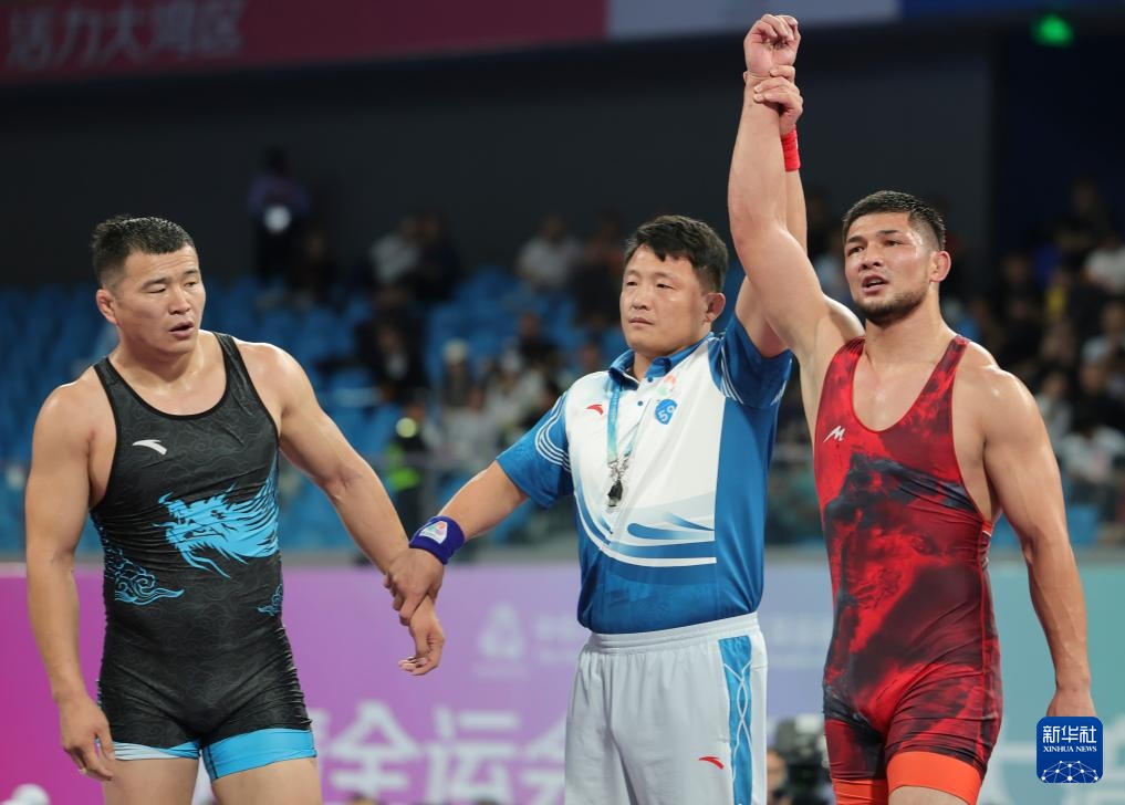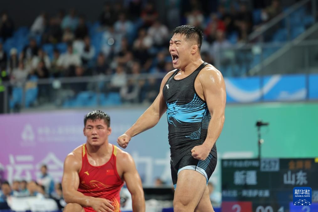 当日,第十五届全国运动会摔跤男子自由式97公斤级比赛在广东清远举行。