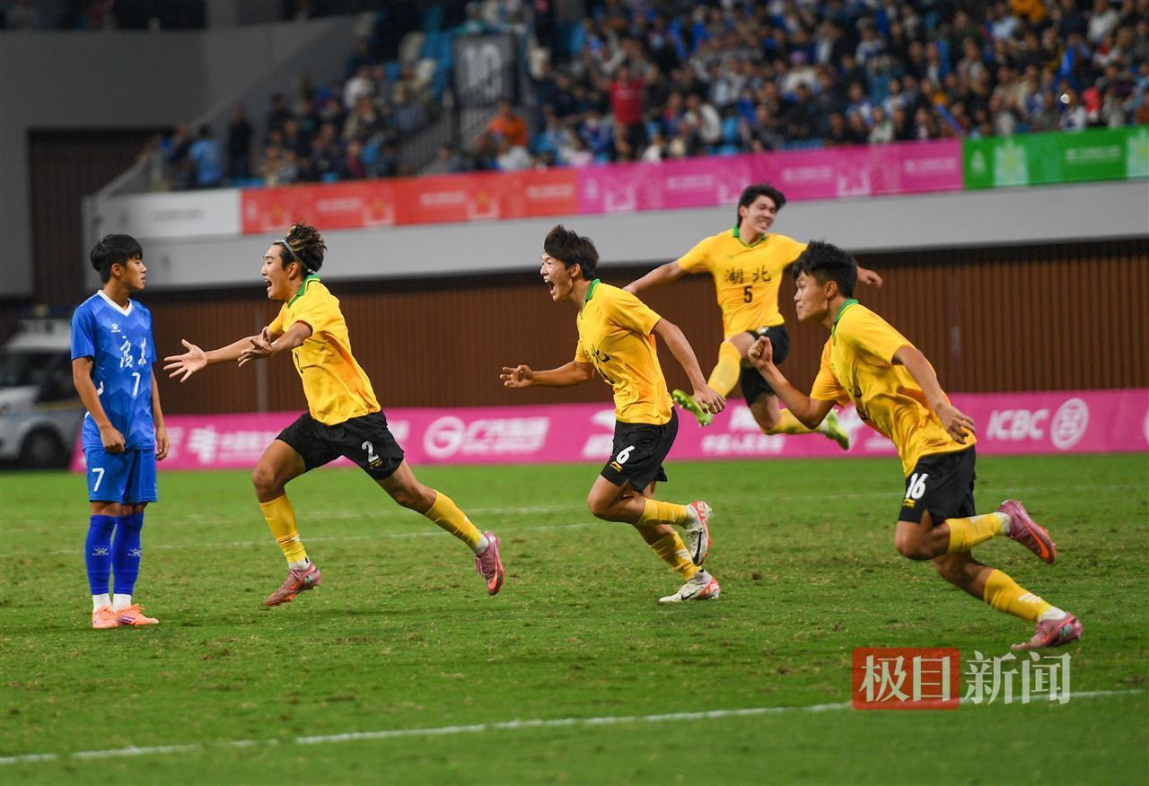 30分钟加时赛双方始终再无进球,比赛进入惊险刺激的点球大战。点球大战中,第三个出场的广东队员王志远踢飞,湖北队5球全进,最终将总比分锁定为6比4。