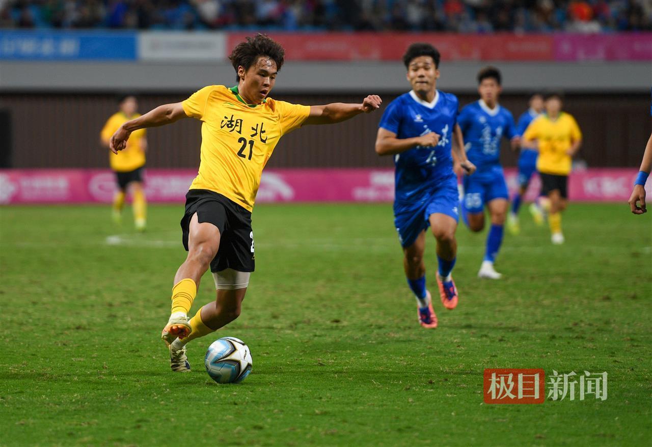 当主裁唐顺齐吹响终场哨时,深圳市青少年足球训练基地内的湖北队将士相拥而泣!11月12日19:45,第十五届全运会男足U20组决赛上演巅峰对决,湖北U20队挑战东道主广东队,经过120分钟的拼抢,以及点球大赛,最终以6比4的总比分战胜东道主广东U20队,获得冠军。自此,在本届全运会男足三个组别(U16、U18、U20)比赛中,湖北代表团收获一金一银,创造历史。