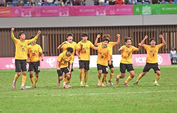 30分钟加时赛双方始终再无进球,比赛进入惊险刺激的点球大战。点球大战中,第三个出场的广东队员王志远将球踢飞,湖北队5球全进,最终将总比分锁定为6比4。