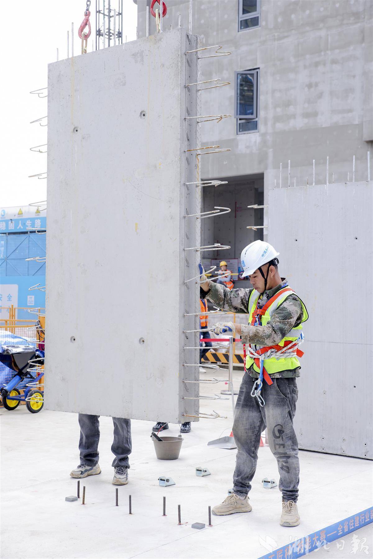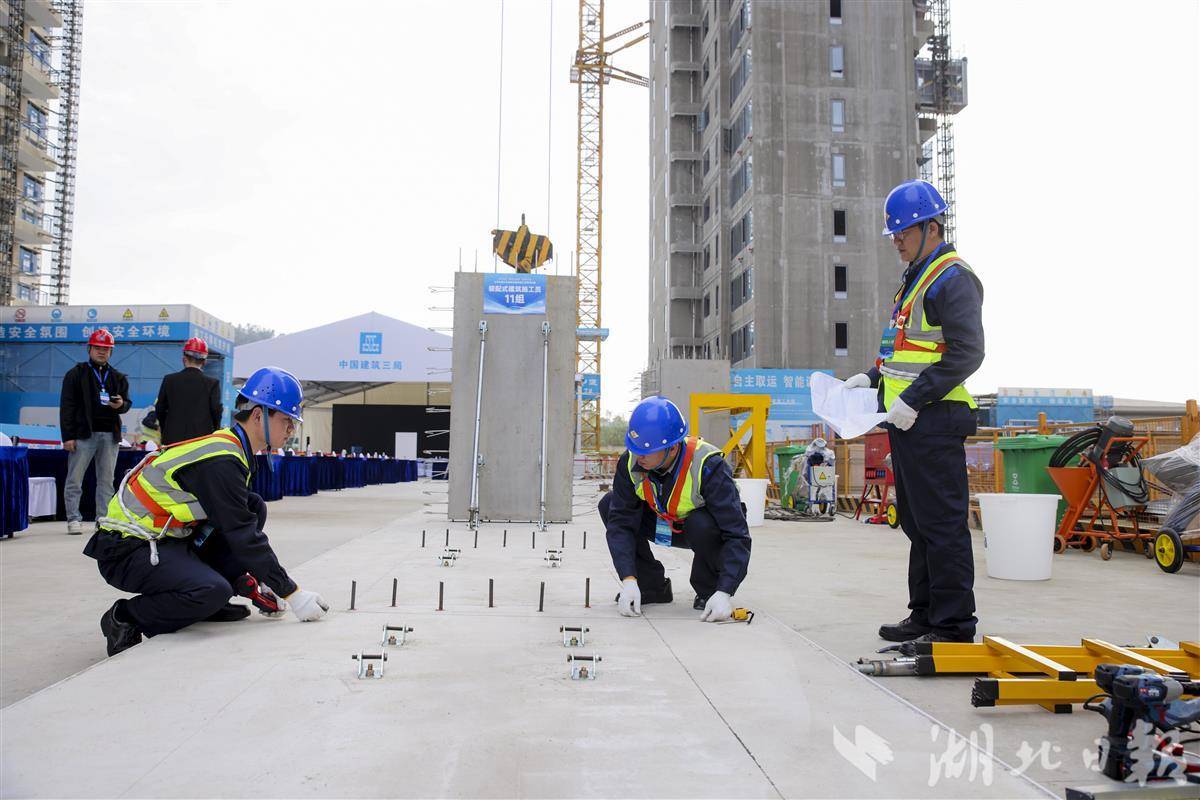 湖北日报讯(记者戴文辉)上方构件底部的套筒必须精准地套住下方构件顶部的定位钢筋,吊装到位后的PC墙必须和地面垂直,灌注在上下构件结合部的水泥浆必须稀稠合适……11月12日,2025年“湖北工匠杯”技能大赛装配式建筑施工员决赛在中建三局汉韵公馆项目举行,13支队伍、26名选手同台竞技,展现了装配式建筑施工的精确性和复杂性。