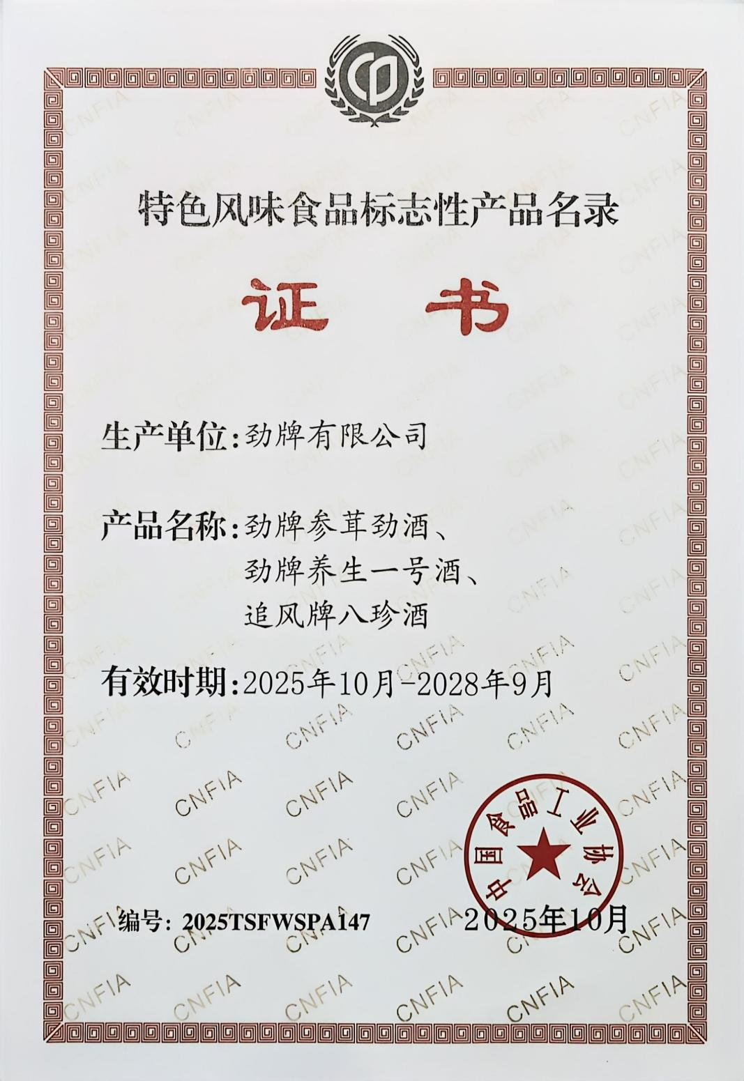 荆楚网(湖北日报网)讯近日,经中国食品工业协会组织专家严格评审,劲牌有限公司旗下“参茸劲酒、养生一号、追风八珍酒”三款产品,成功入选《全国特色风味食品标志性产品、制作技艺传承人名录》。这一国家级认可,标志着劲牌产品的独特风味、卓越品质与深厚文化底蕴获得了行业最高权威的肯定。