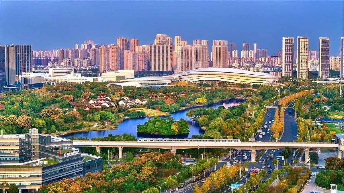 地铁1号线列车驶过码头潭遗址公园,层林尽染惹人醉。