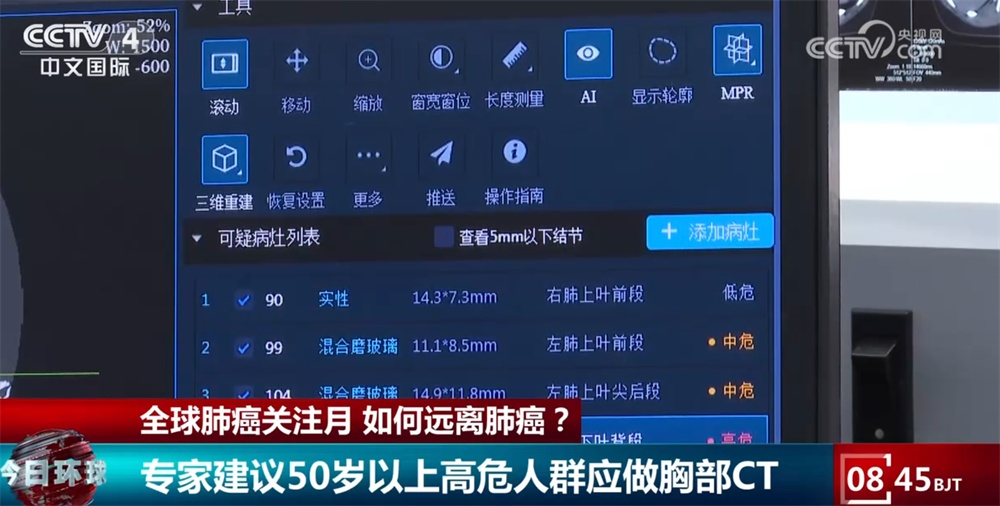 央视网消息:每年的11月是“全球肺癌关注月”。肺癌是中国发病率、死亡率最高的恶性肿瘤。随着胸部CT的普及,越来越多的肺结节被筛查出来。眼下正值年底体检高峰,一旦体检发现肺结节,就意味着会有发展成肺癌的风险吗?肺结节是否需要立刻手术呢?