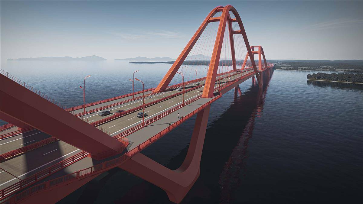 天子山大桥外观设计主题为“拱连梁湖”,灵感来源于梁子湖的湖水波光和天子山的山势起伏。桥梁采用连续的拱形结构,整体造型轻盈而有力,线条简洁流畅,与周边自然环境相协调。