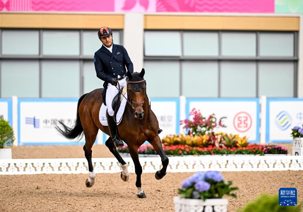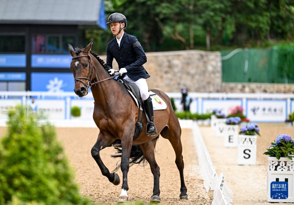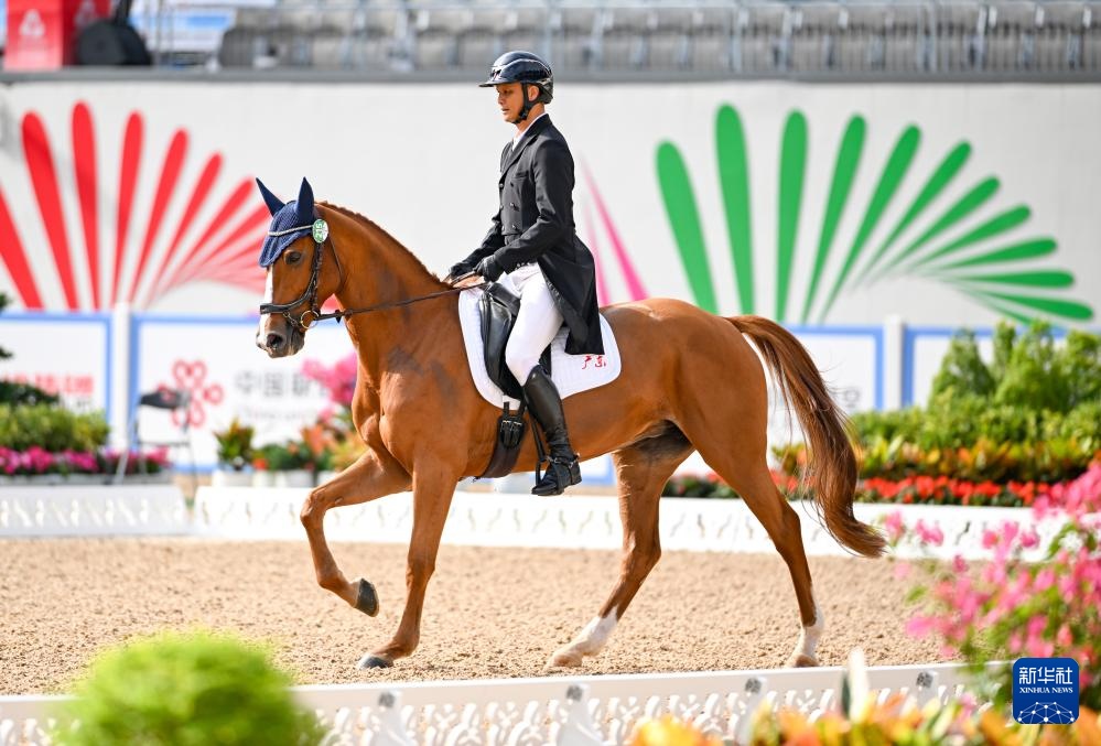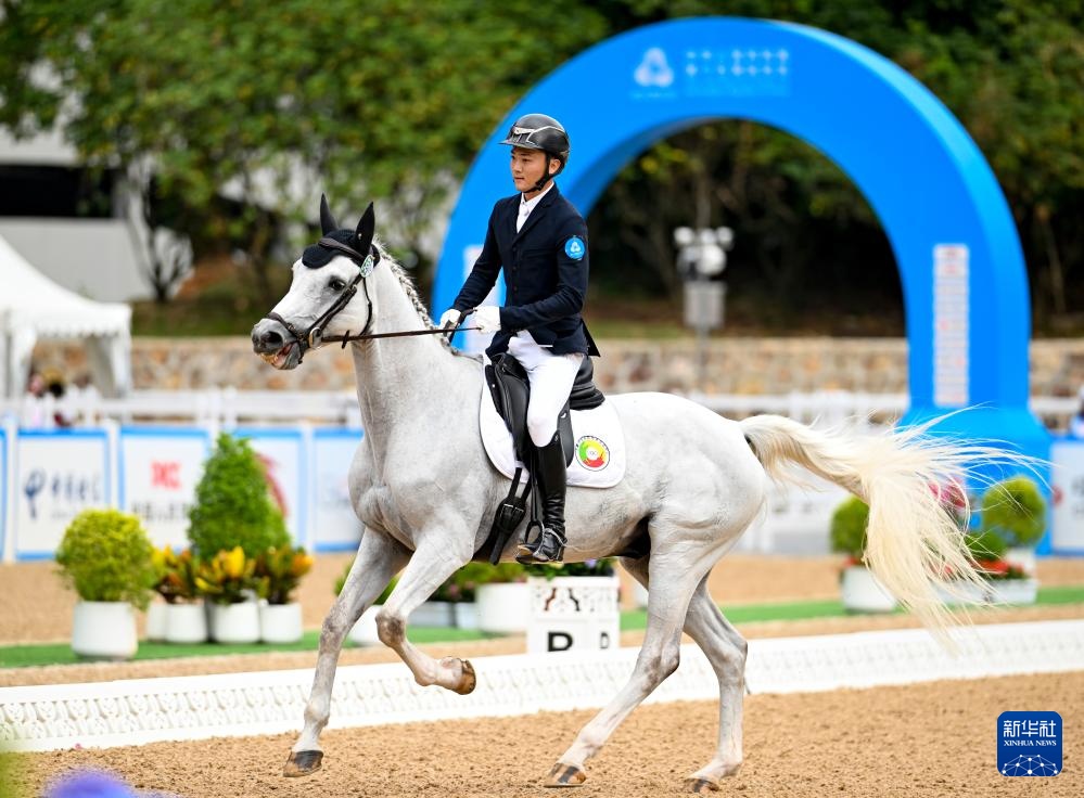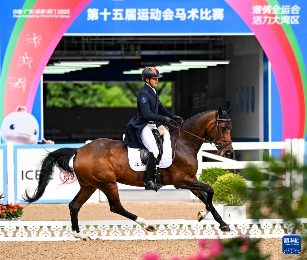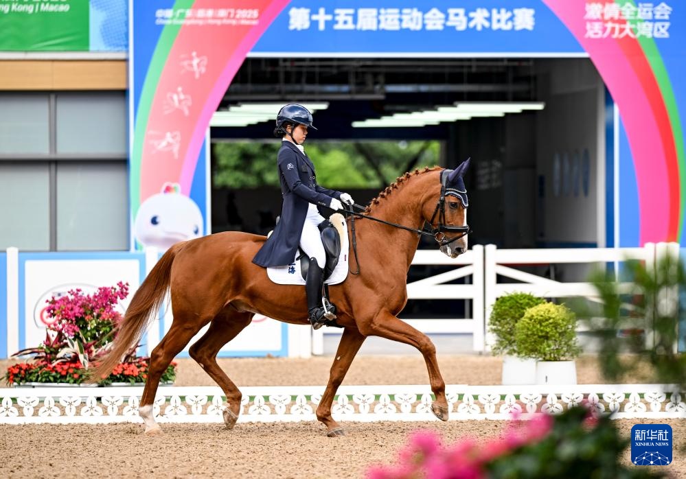 当日,第十五届全国运动会马术三项赛团体赛决赛(个人资格赛)盛装舞步在广东深圳光明国际马术中心举行。