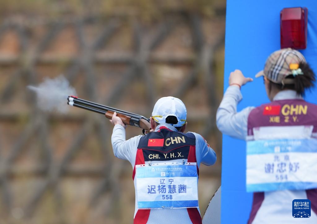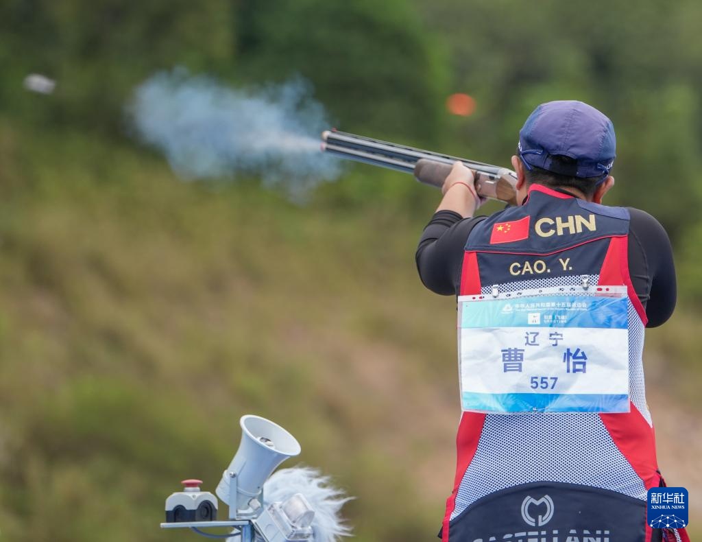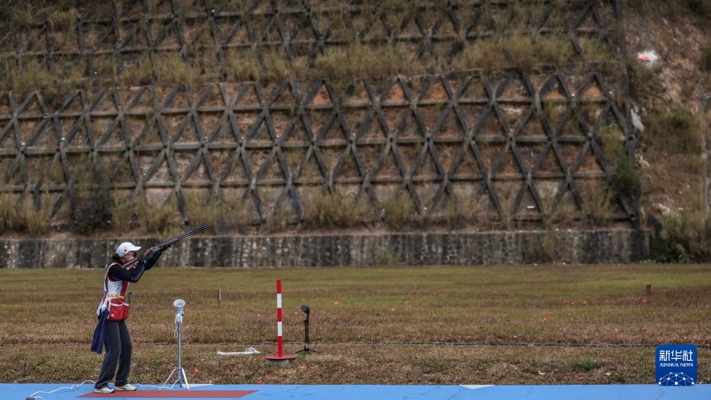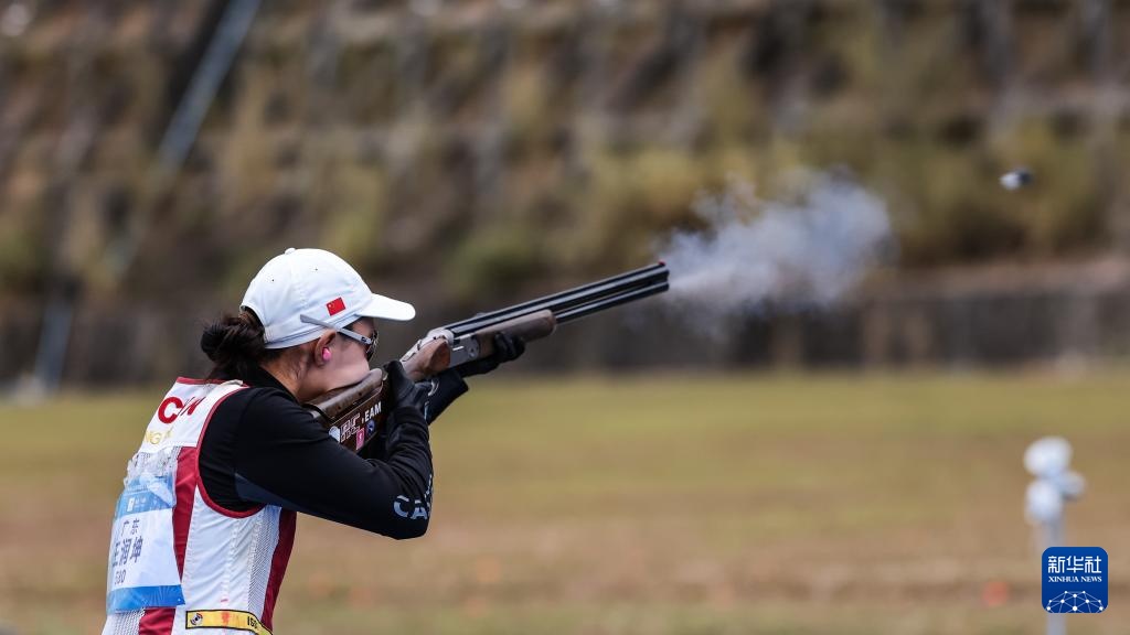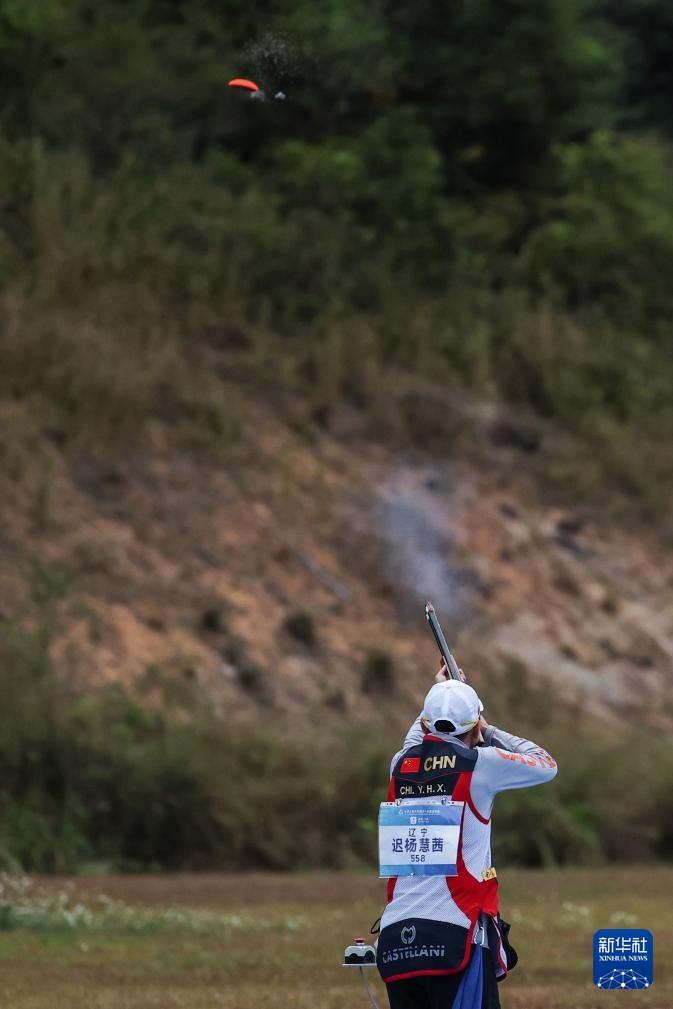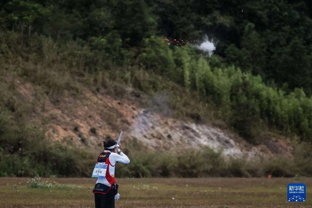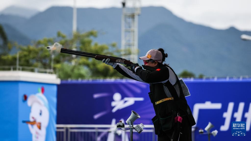 当日,第十五届全国运动会射击项目女子飞碟双向资格赛在广州举行。