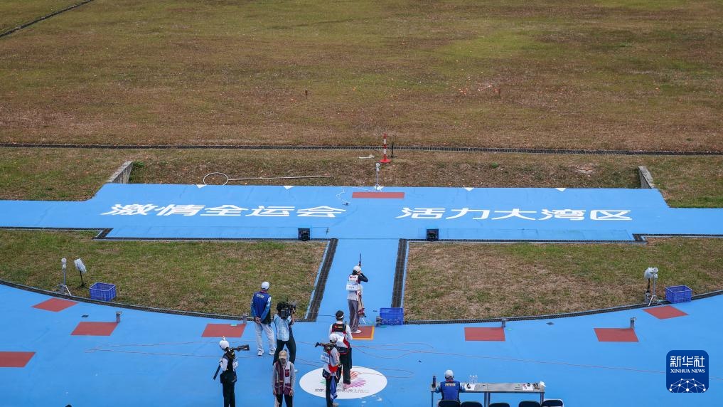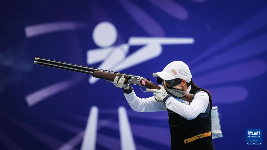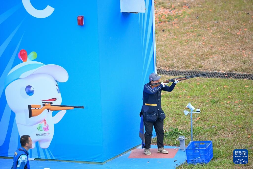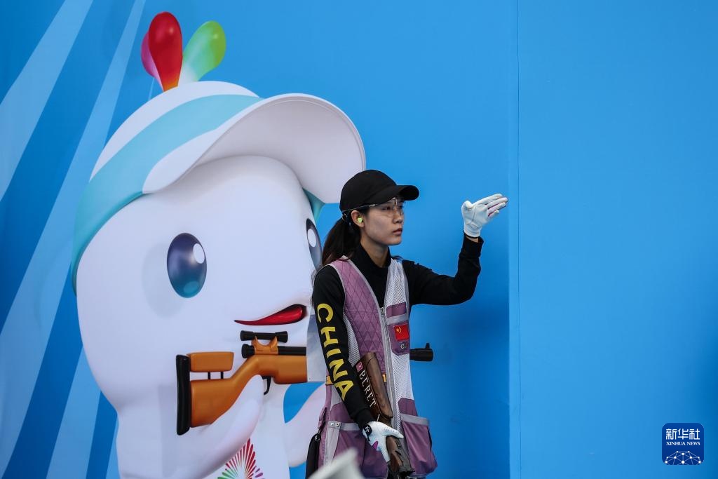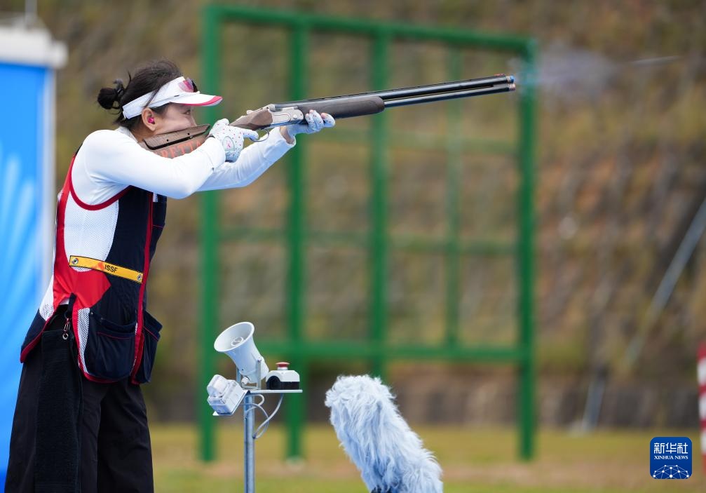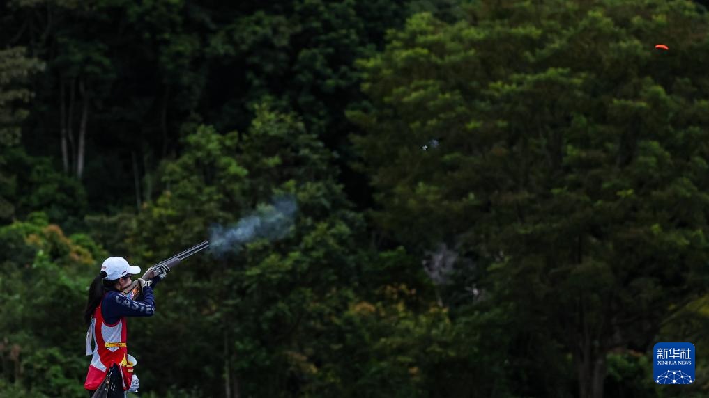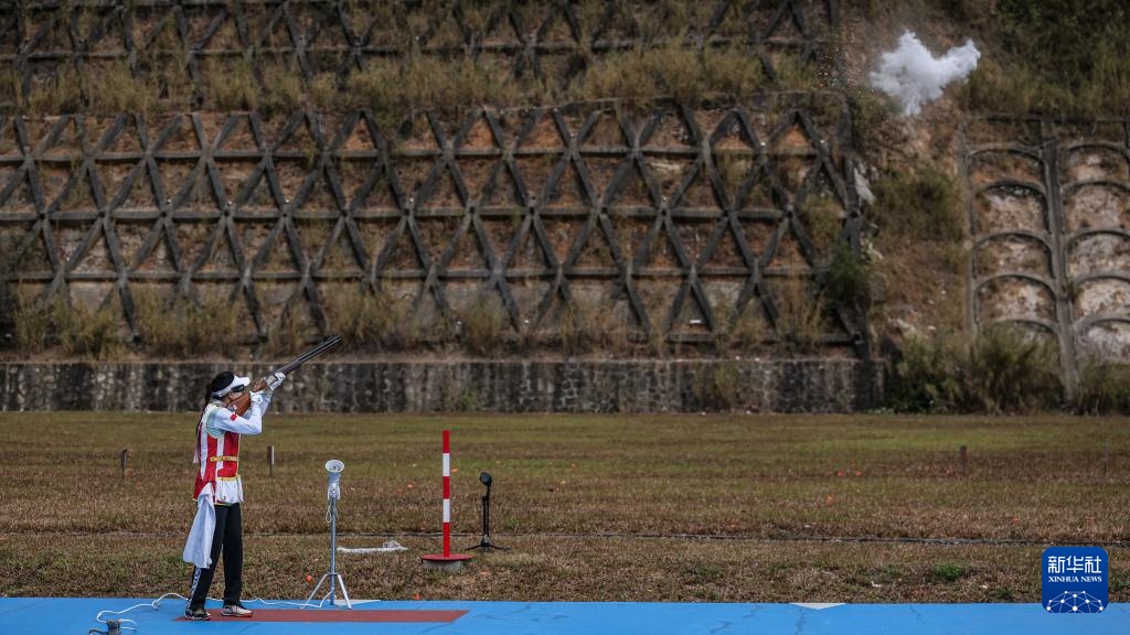 当日,第十五届全国运动会射击项目女子飞碟双向资格赛在广州举行。