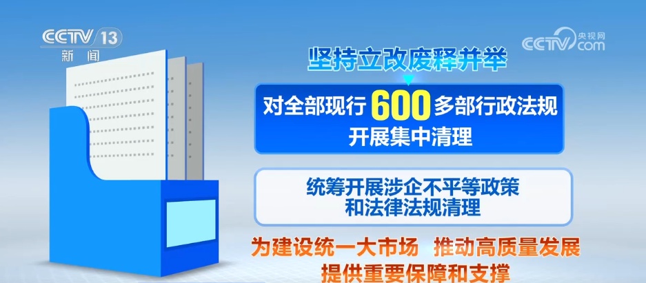 为推进法治化营商环境建设,五年来,我国深入推进科学立法、民主立法、依法立法,切实以高质量立法保障经济社会高质量发展,截至今年10月底,制定修改民营经济促进法、公司法、反垄断法等法律115件次,制定修改公平竞争审查条例、保障中小企业款项支付条例等行政法规158件次。同时,坚持立改废释并举,对全部现行600多部行政法规开展集中清理,统筹开展涉企不平等政策和法律法规清理,为建设统一大市场、推动高质量发展提供了重要保障和支撑。