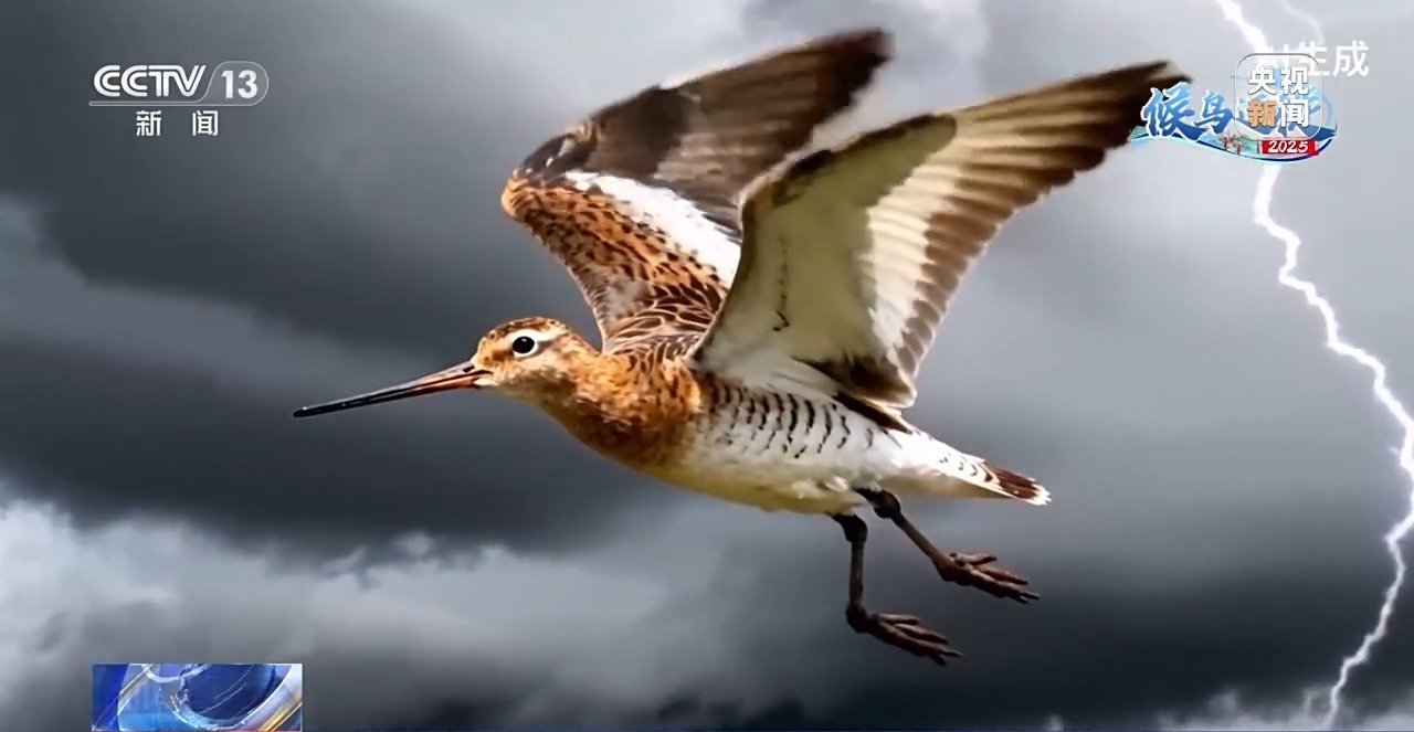 湖南城市学院信息与电子工程学院副教授 黄田:斑尾塍鹬在迁徙过程中它会借助气象条件,比如借助气流,然后帮助它自己去迁徙,以最小的成本来实现自己迁徙的过程。这个案例也说明迁徙中斑尾塍鹬的适应能力很强,它能够很好地去应对这种极端天气。