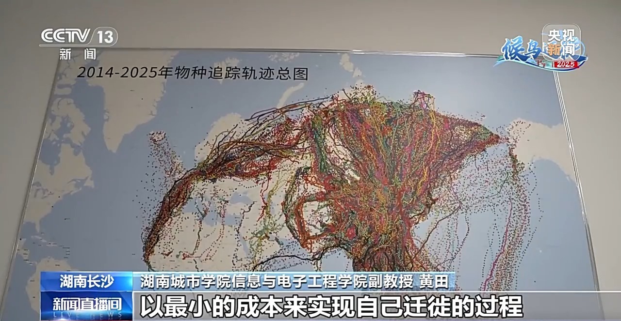 湖南城市学院教授 周立波:世界上最轻的鸟是蜂鸟,5~10克的蜂鸟是可以追踪的。全球鸟类种类有9000多种,现在基本上99%以上的鸟我们都可以追踪。