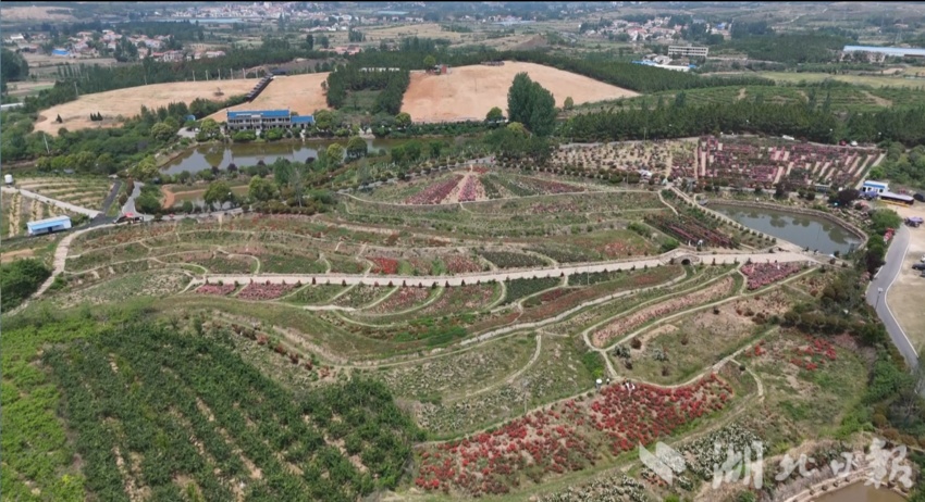 观音村连绵起伏的山坡上,月季花竞相绽放。