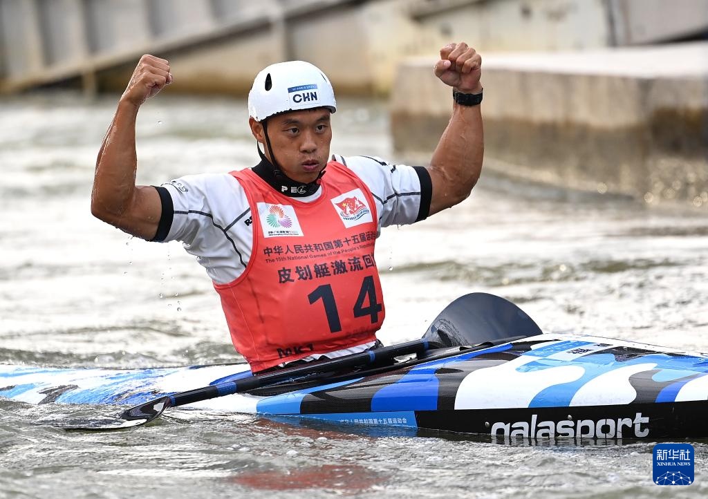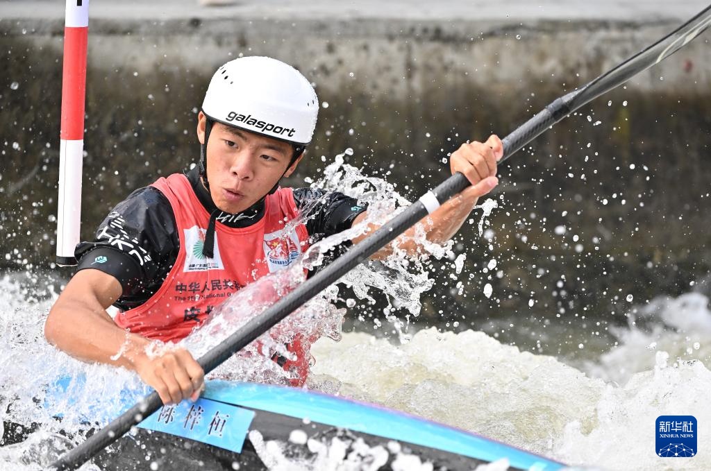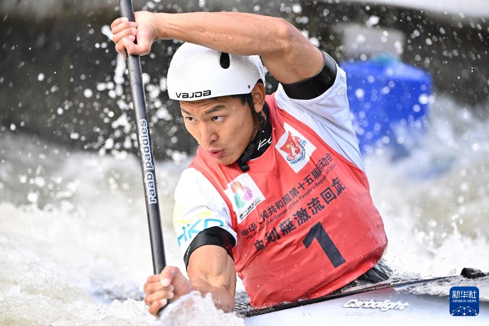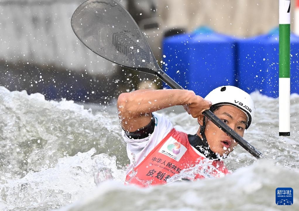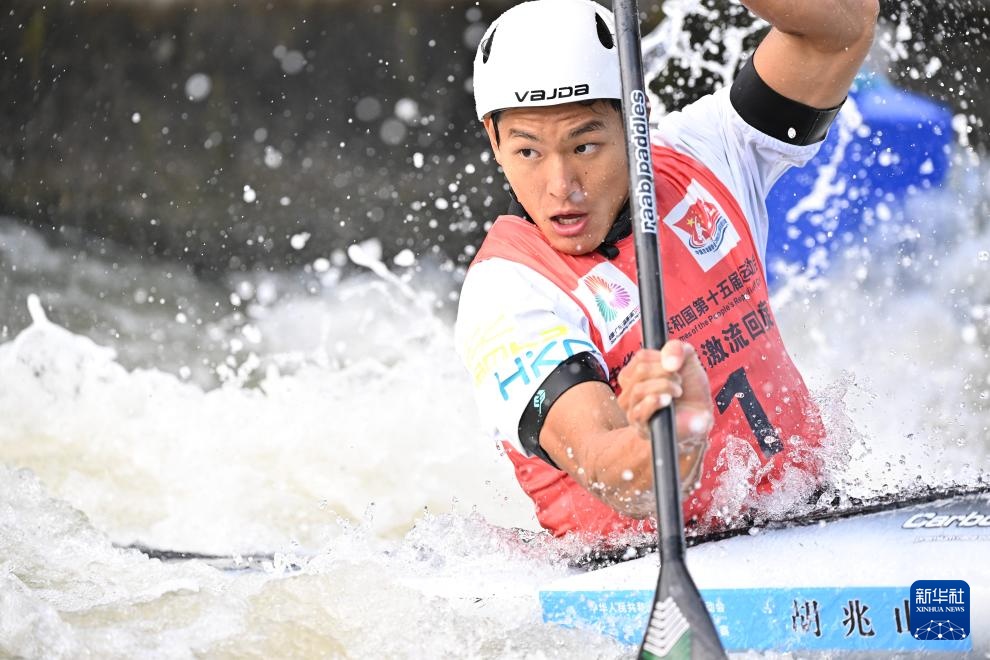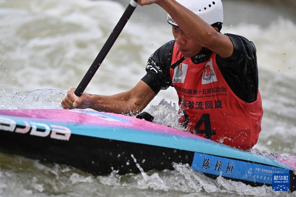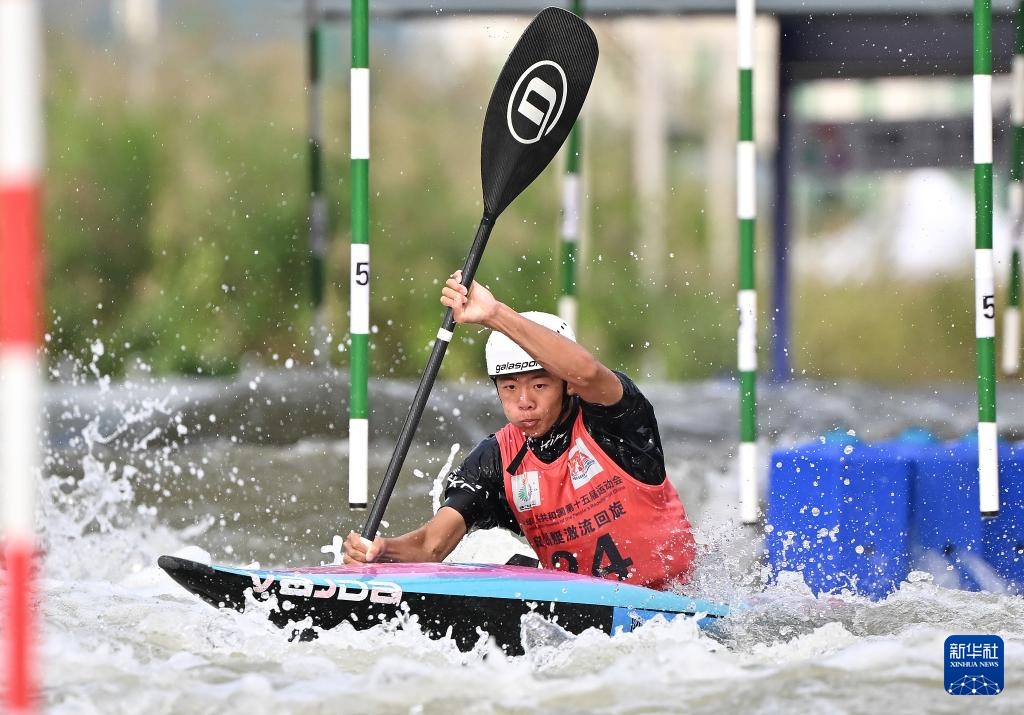 当日,第十五届全国运动会皮划艇激流回旋男子单人皮艇决赛在广州举行。