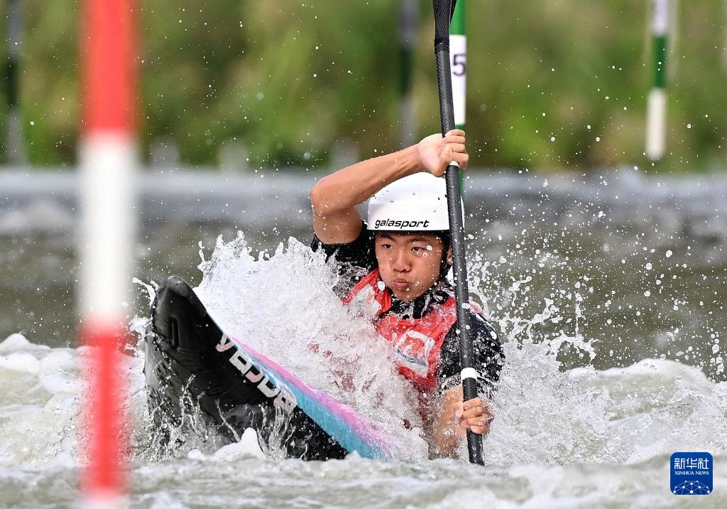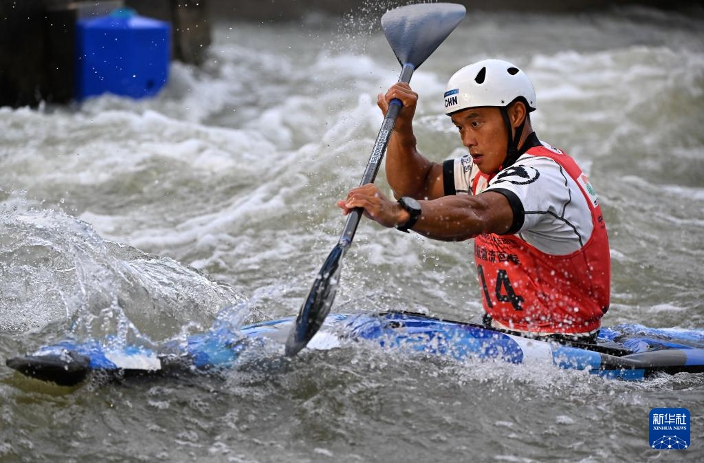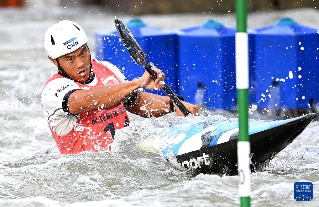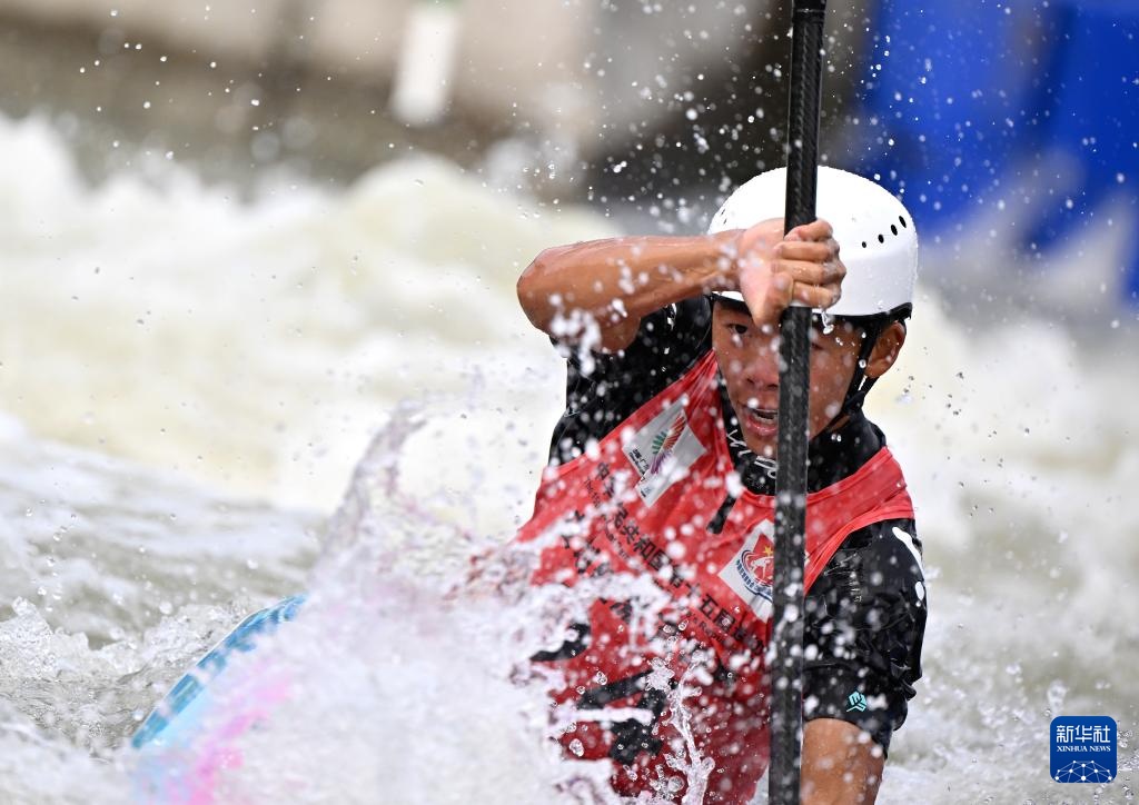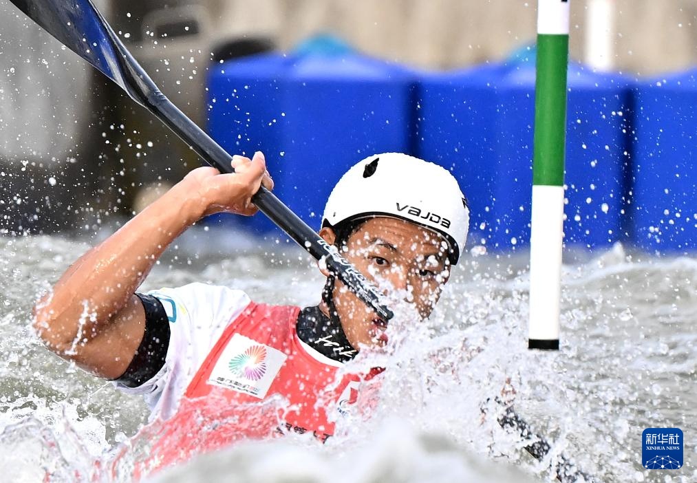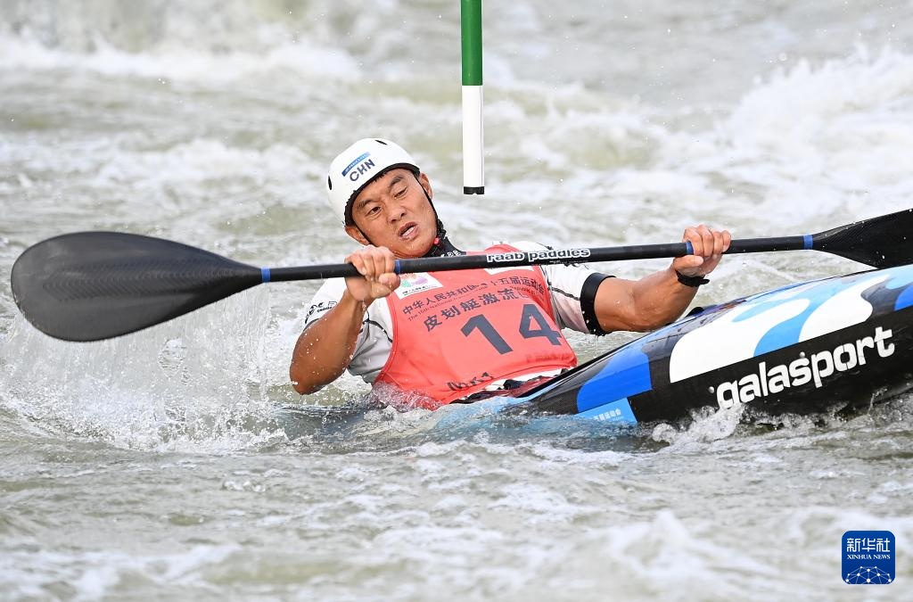 当日,第十五届全国运动会皮划艇激流回旋男子单人皮艇决赛在广州举行。
