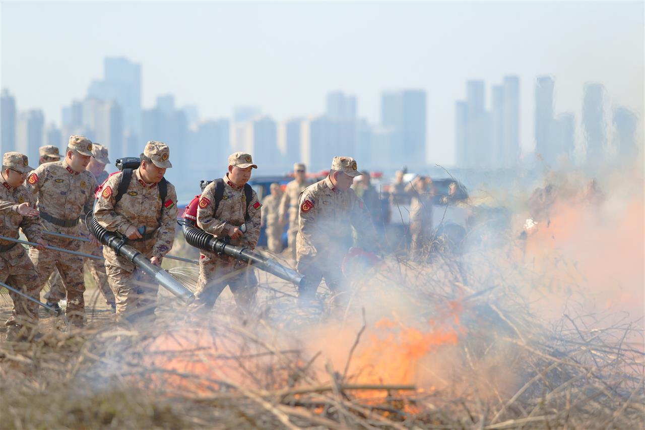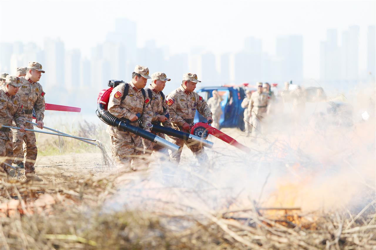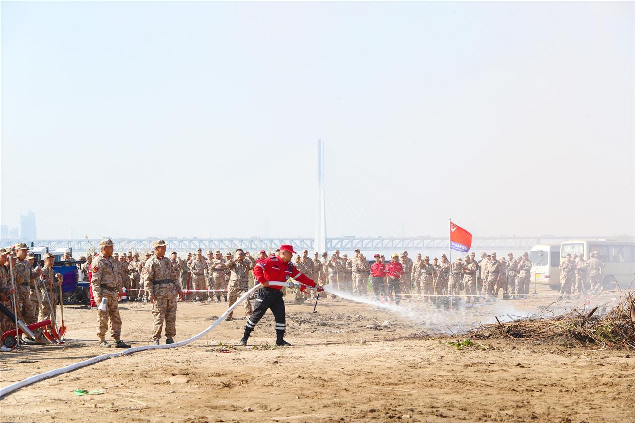 浓烟翻涌,火龙疾窜。11月13日上午,在武汉市洪山区天兴洲码头空地,一场贴近实战的森林防灭火应急救援演练紧张打响。洪山区人武部组织170余名基干民兵,围绕应急响应、协同扑救、器材运用等关键环节展开全流程演练,全面检验民兵队伍在复杂火情下的应急处置与协同作战能力。