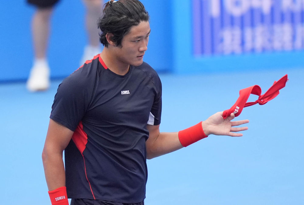 11月13日,上海队选手张之臻在男子单打比赛结束后取下头巾。新华社记者 颜麟蕴 摄