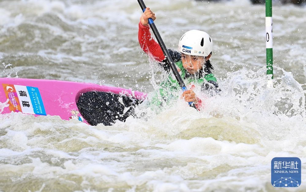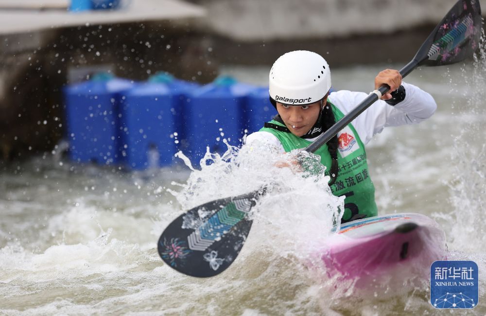 11月13日,第十五届全国运动会皮划艇激流回旋项目女子单人皮艇决赛在广州举行。