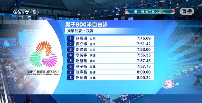 刚刚,十五运会男子800米自由泳决赛,18岁小将张展硕夺得金牌,并打破全国青年纪录。此前,他已获得男子200米自由泳、男子400米自由泳的冠军,均打破全国青年纪录。祝贺!