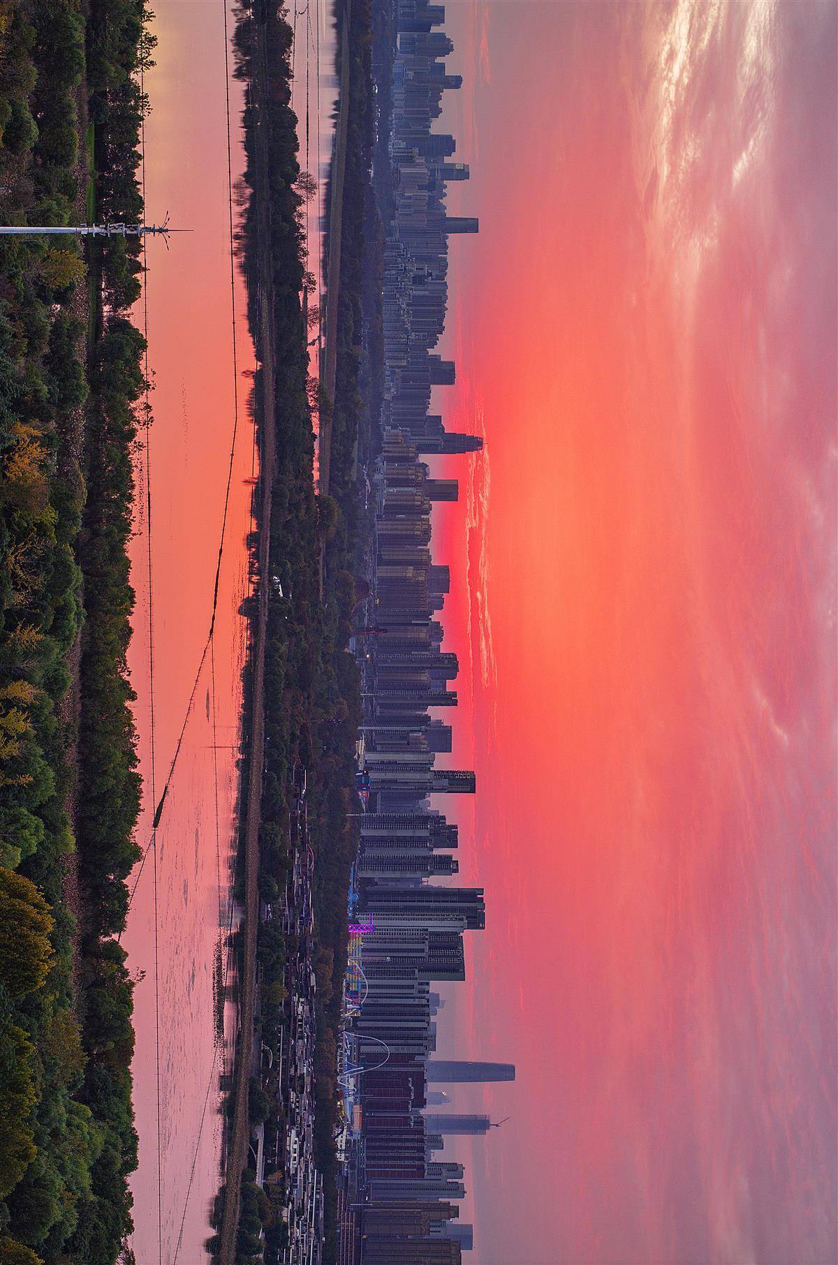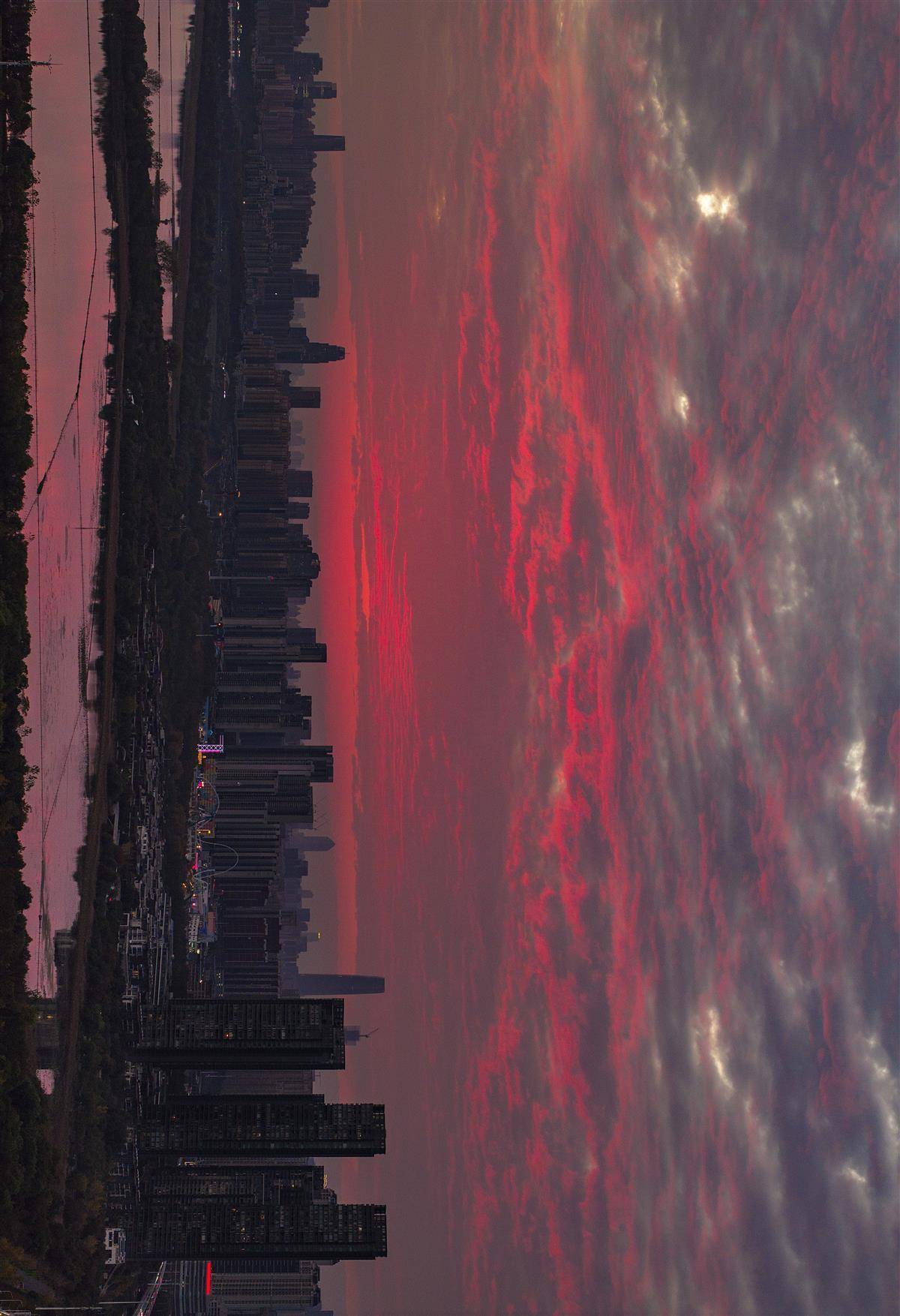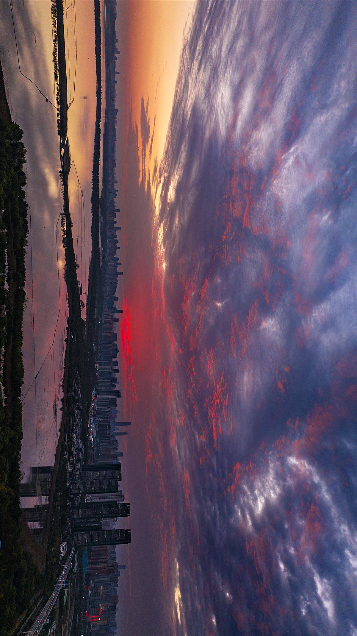 11月13日傍晚,武汉上空出现美丽晚霞。
