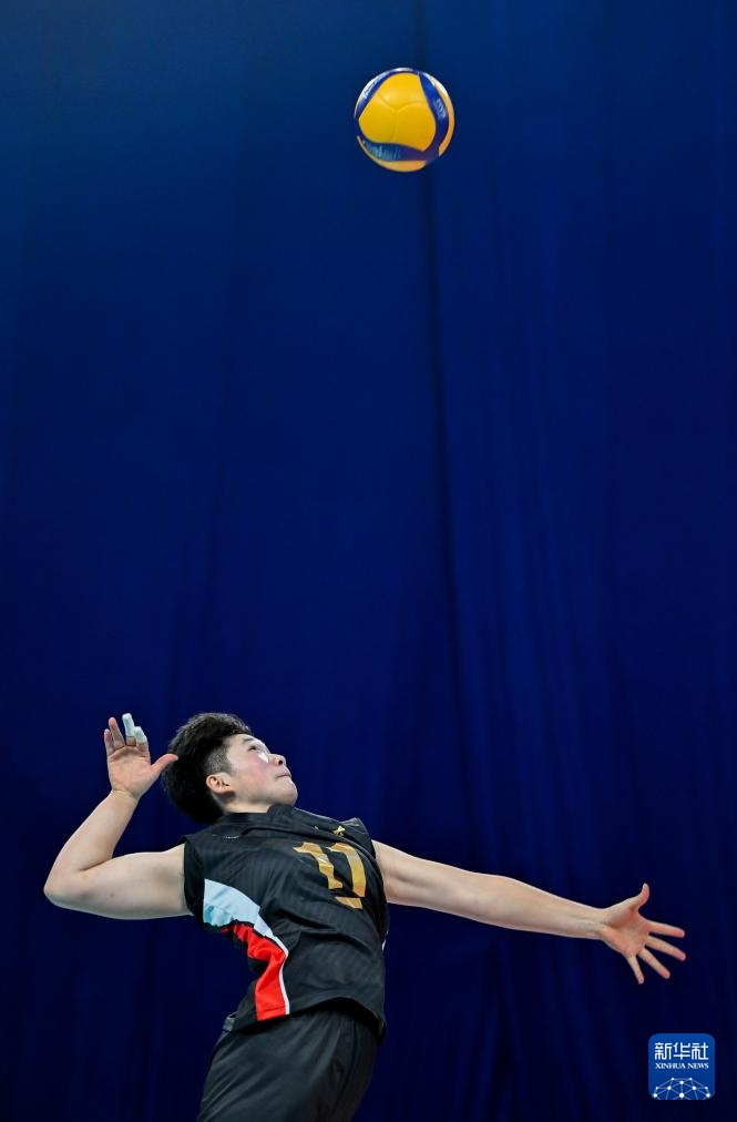 11月13日,山东队球员肖宇彤在比赛中发球。