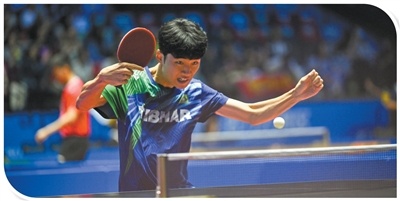 本届全运会,曾经的国家队队员、世界冠军朱雨玲代表澳门乒乓球队参赛。“和世界冠军一起训练,对我提升球技很有帮助。”郑孔崴说。