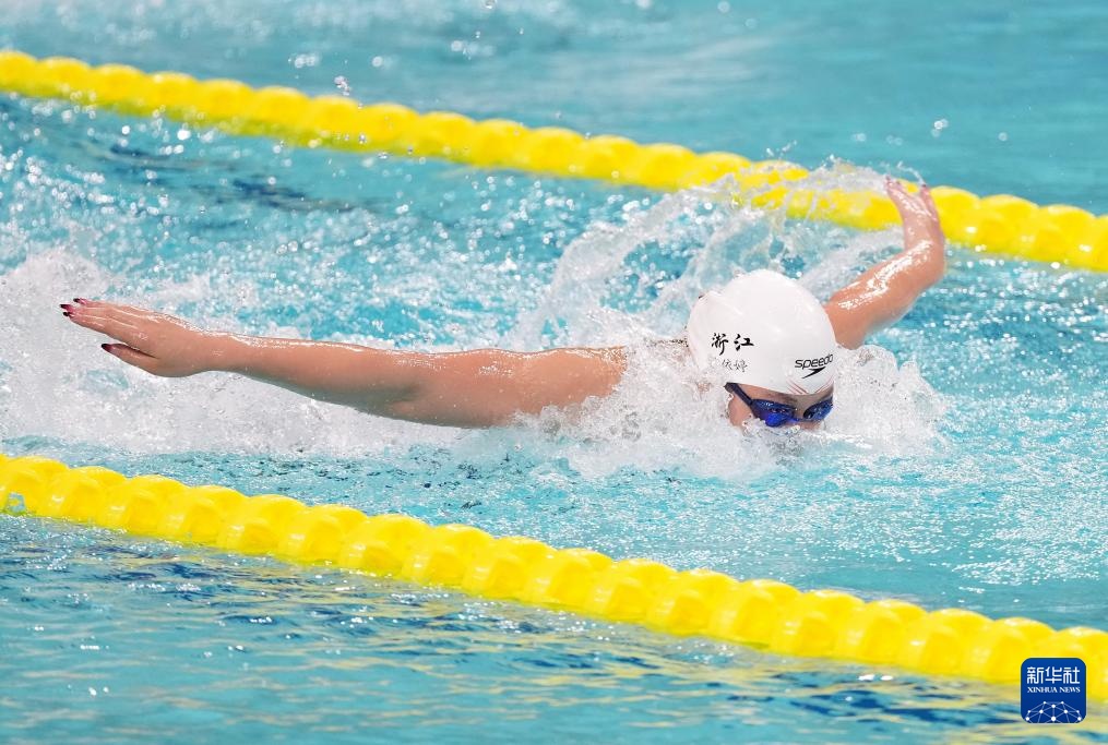 11月13日,浙江队第三棒选手余依婷在比赛中。最终,浙江队获得冠军。