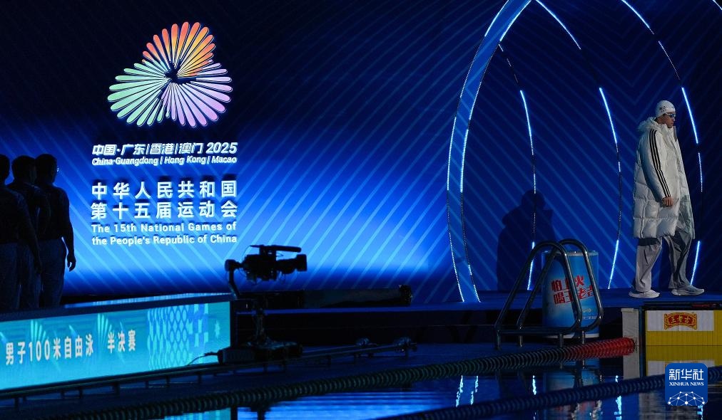 当日,第十五届全国运动会游泳男子100米自由泳半决赛在深圳举行。