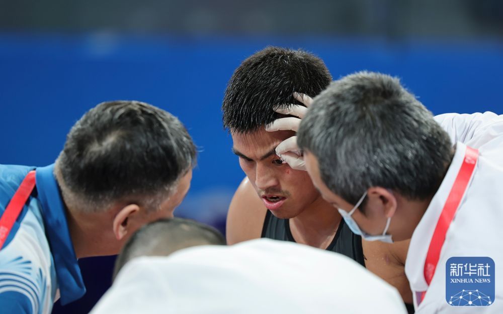 ↑ 山西队选手钱海涛(中)在比赛中受伤。
