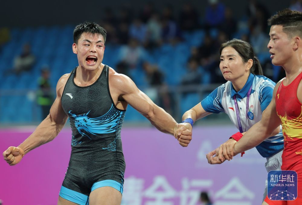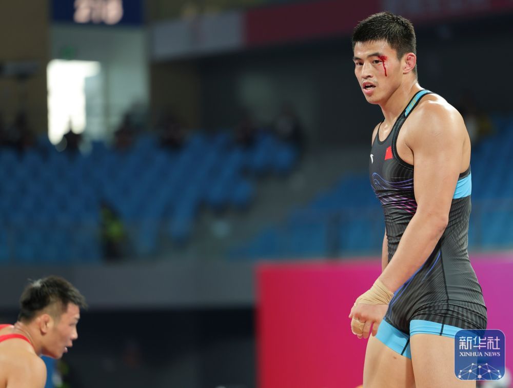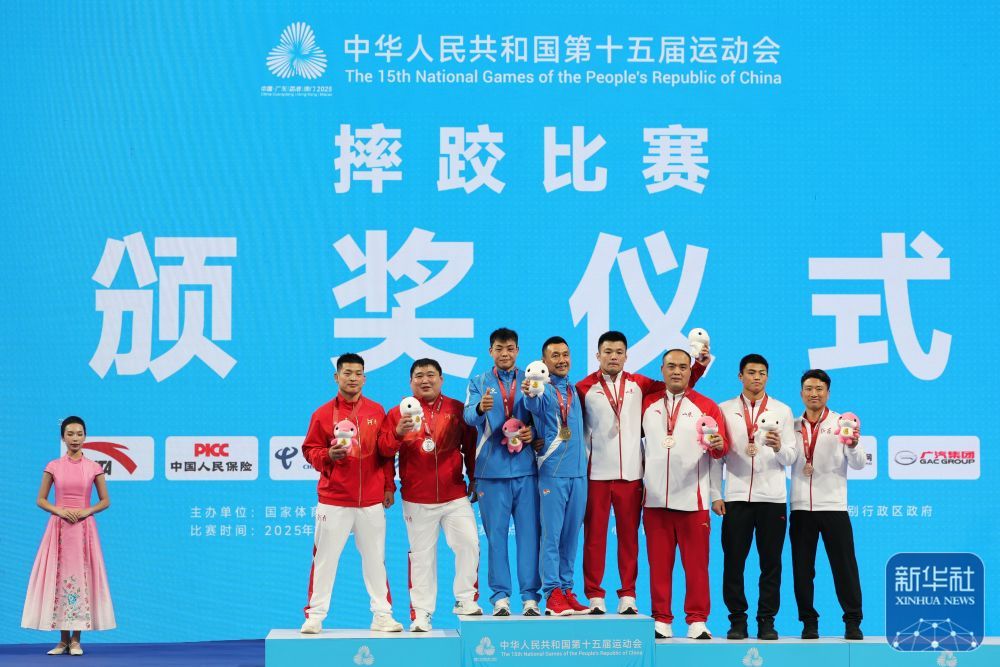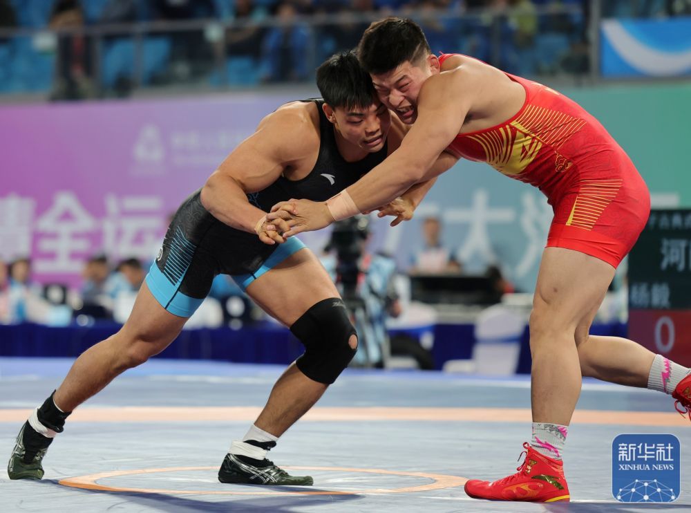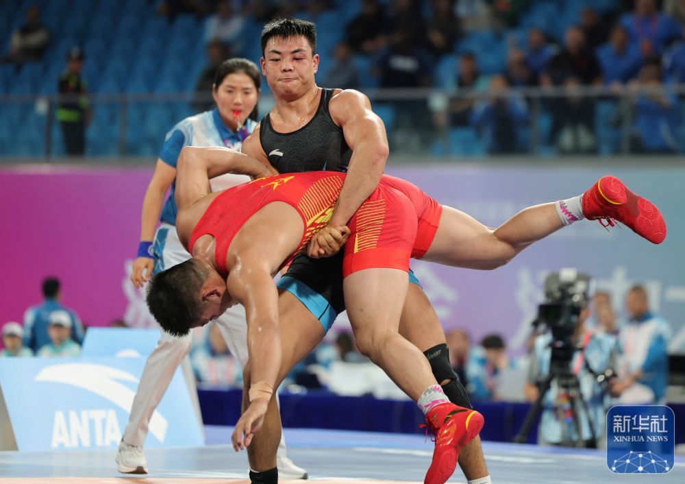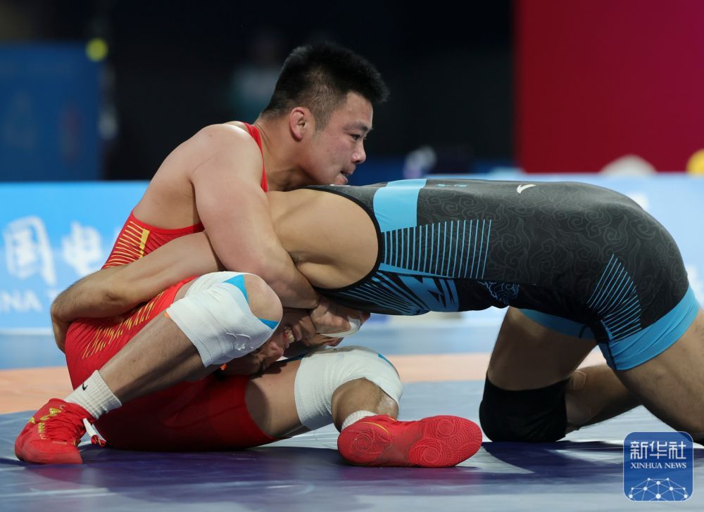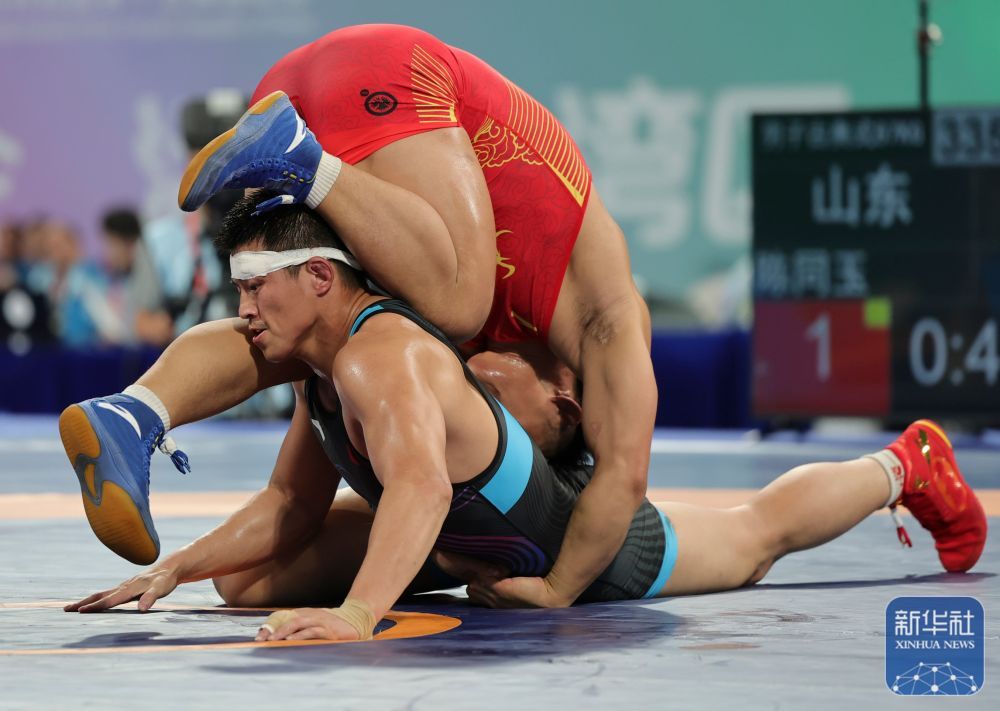11月13日,第十五届全国运动会摔跤男子古典式87公斤级比赛在广东清远举行。辽宁队选手郑世昌夺得冠军。