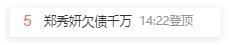 11月13日,“郑秀妍欠债千万”的话题登上微博娱乐热搜榜。