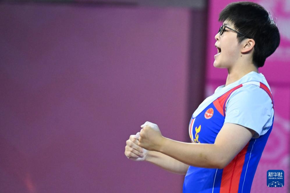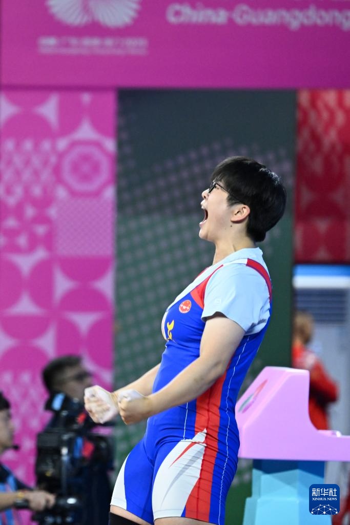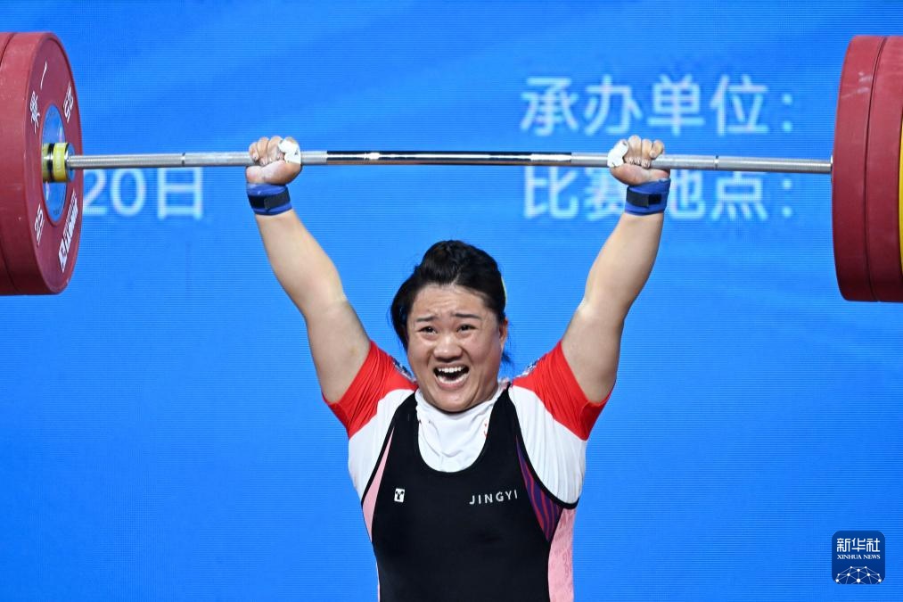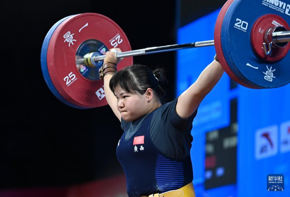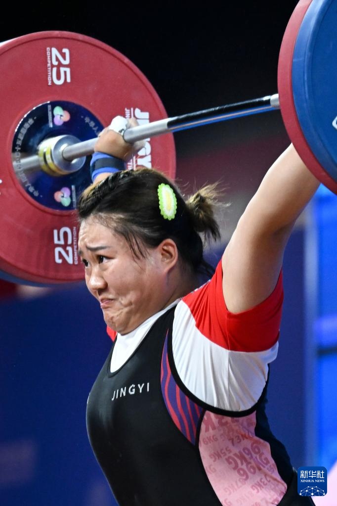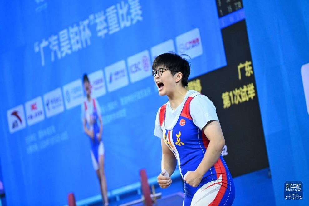 11月13日,广东队选手彭翠婷在抓举比赛中。她最终以128公斤的抓举成绩超世界纪录,并创造新的全国纪录。