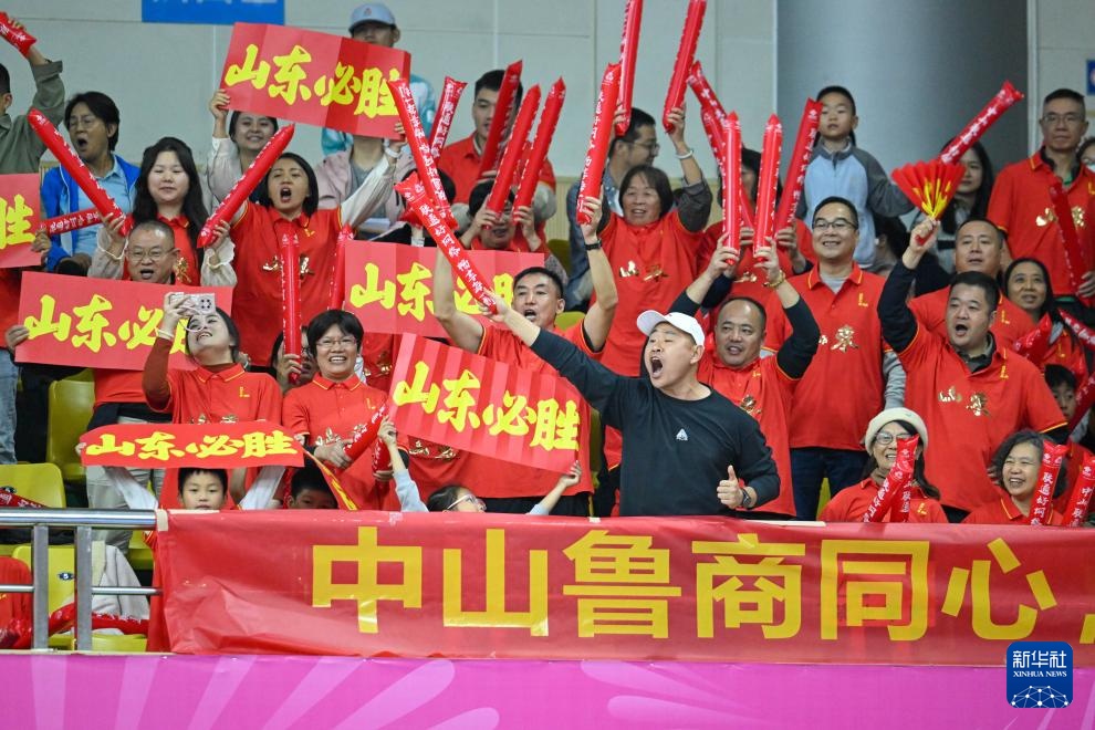 11月13日,山东队球迷在比赛中为球员呐喊加油。