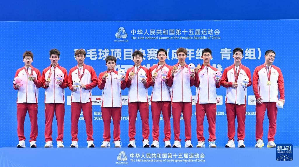 当日,在广东深圳进行的第十五届全国运动会羽毛球18岁以下男子团体决赛中,山东队3比1战胜湖北队,夺得冠军。