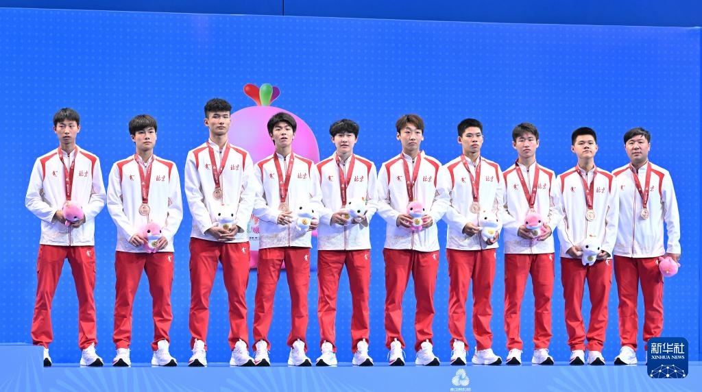 11月13日,获得季军的北京队成员在颁奖仪式上合影。