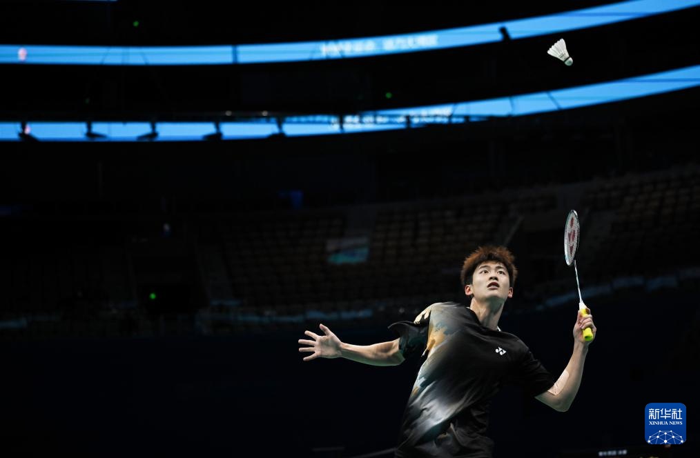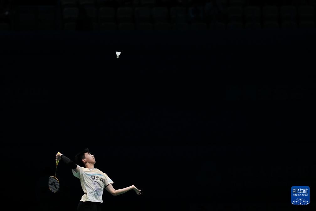 11月13日,湖北队选手王子峻在男单比赛中回球。他0比2不敌山东队选手肖高博。